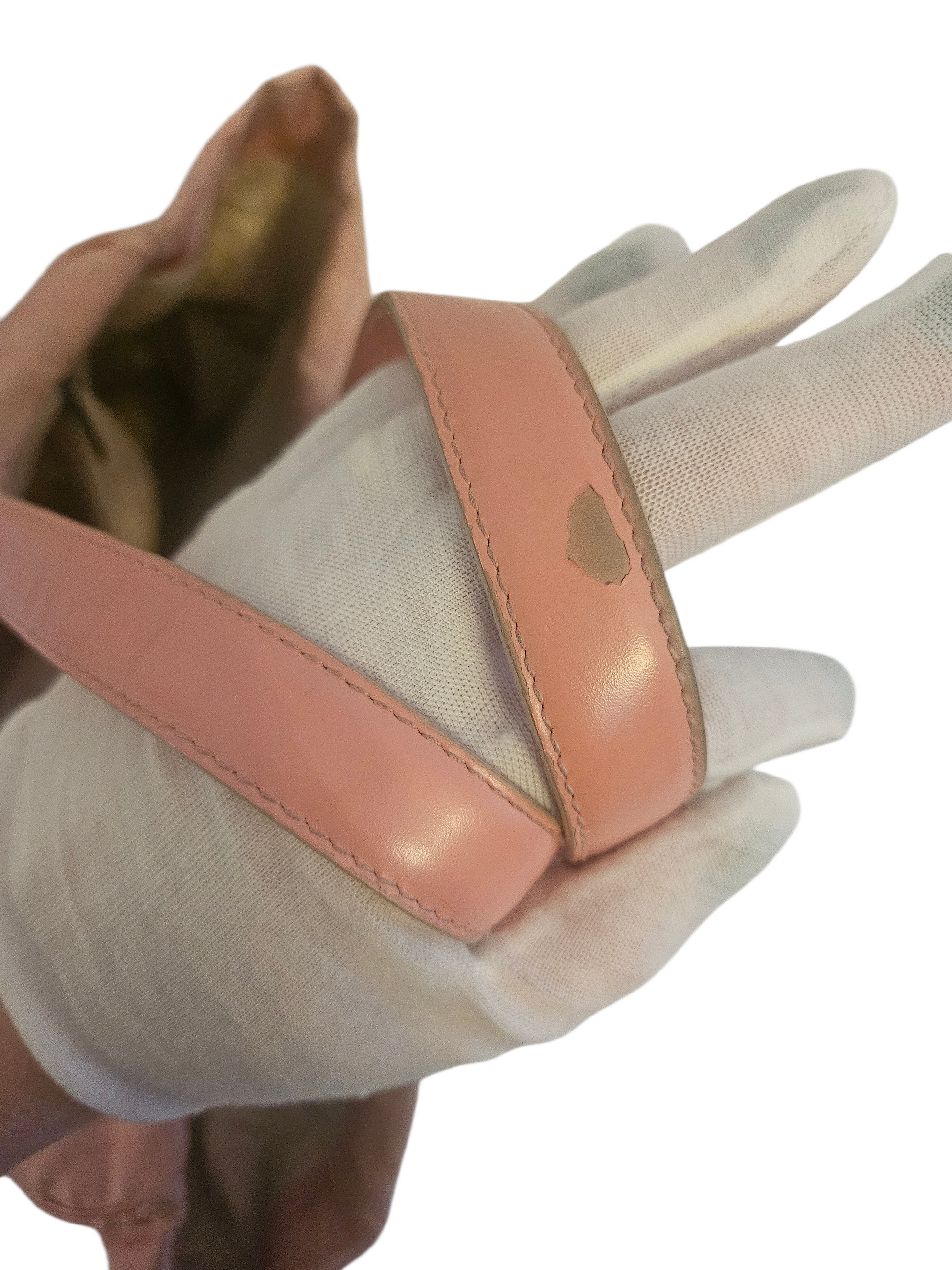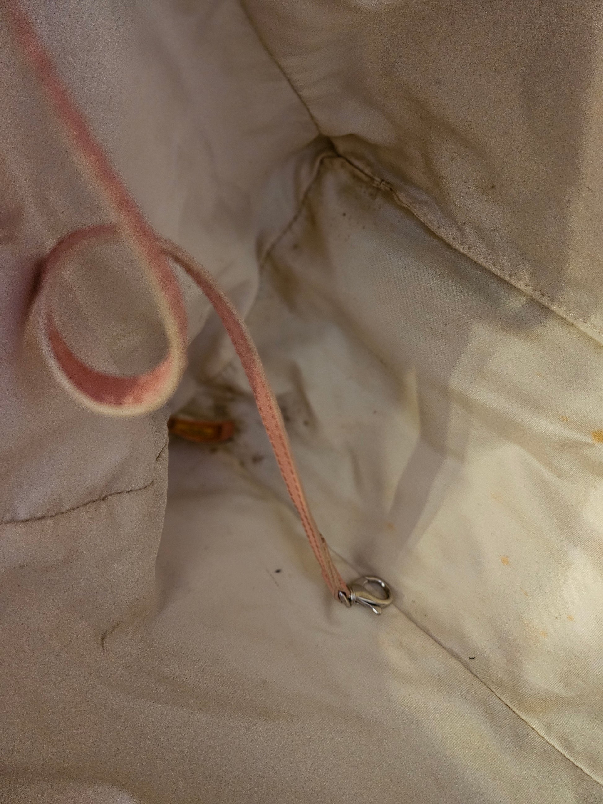Käytönjälkiä: Käytönjälkiä ja tummuneita osia laukun sisä- ja ulkopuolella. Käytönjälkiä kahvoissa. Vähäisiä värimuutoksia metalliosissa. Laukun sisäpohjan muotoa tukeva osa on rikki, mutta se ei näy käytössä.