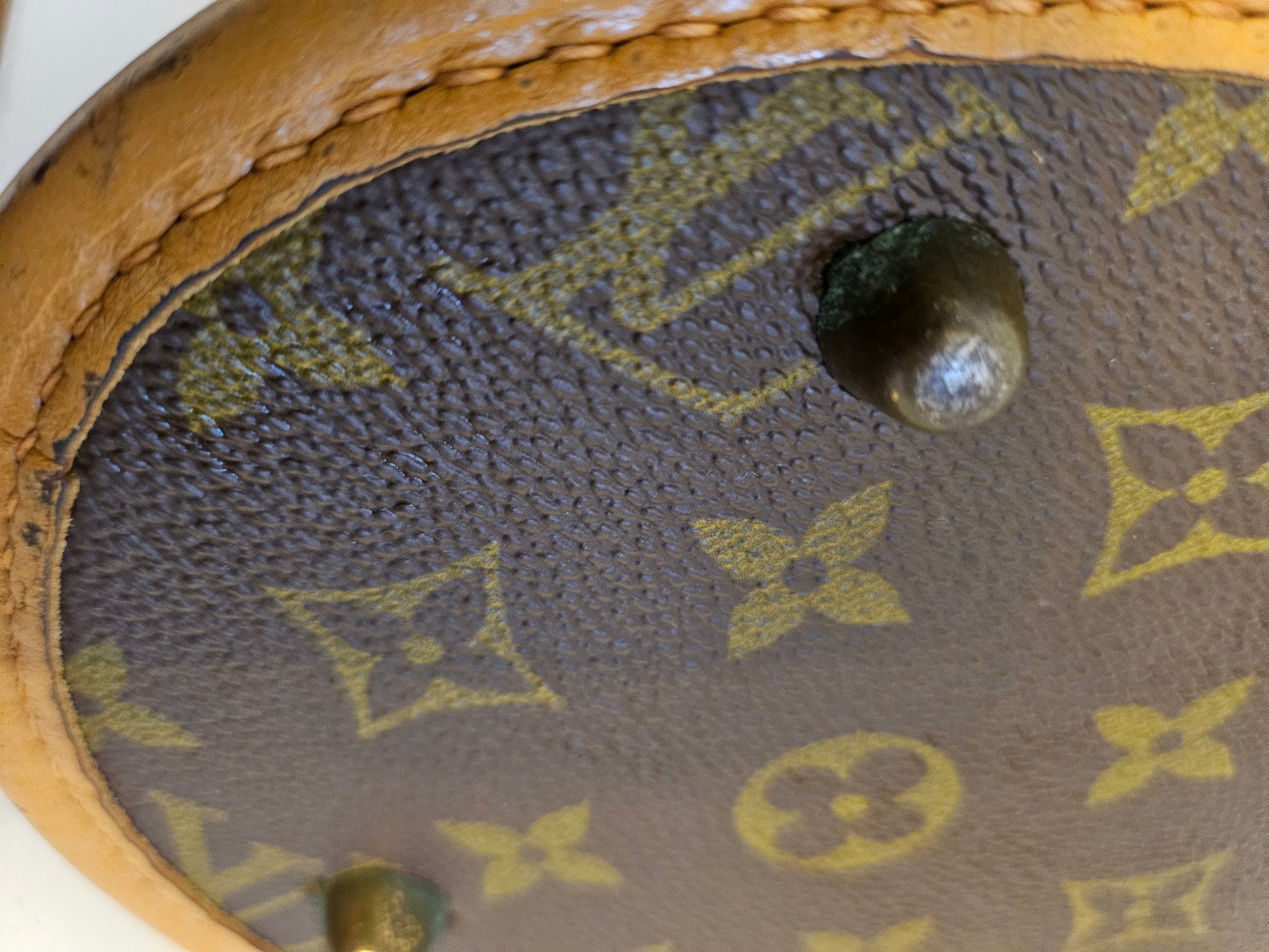 Käytönjälkiä: Värjäytymiä ja hapettumista metalliosissa. Vähäisiä käytönjälkiä sisäpuolella. Käytönjälkiä nahkaosissa, erityisesti pohjassa.