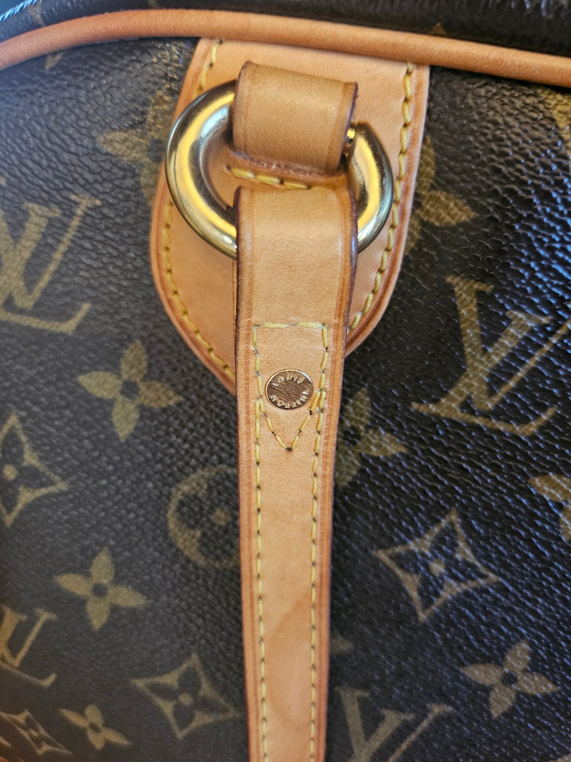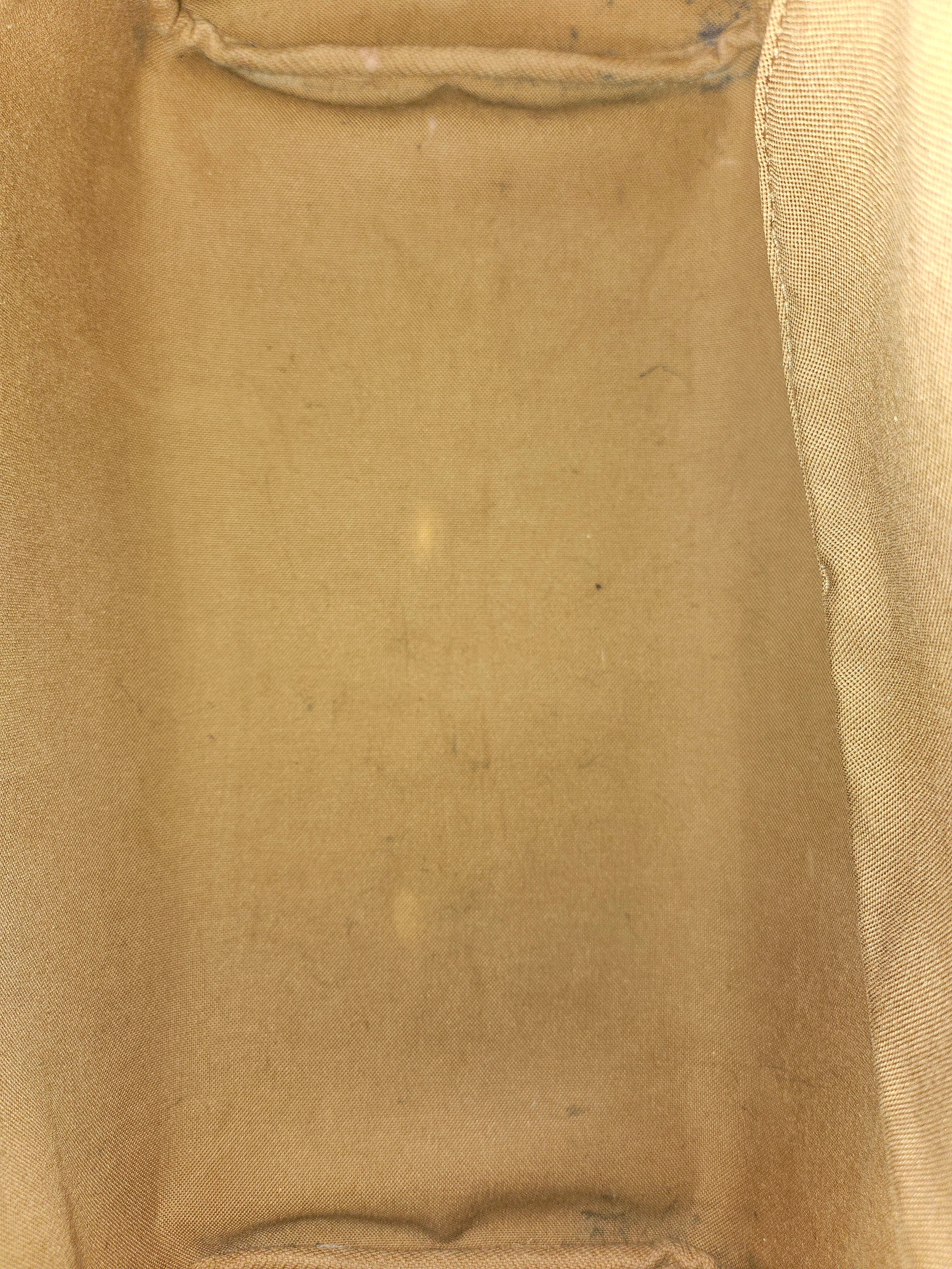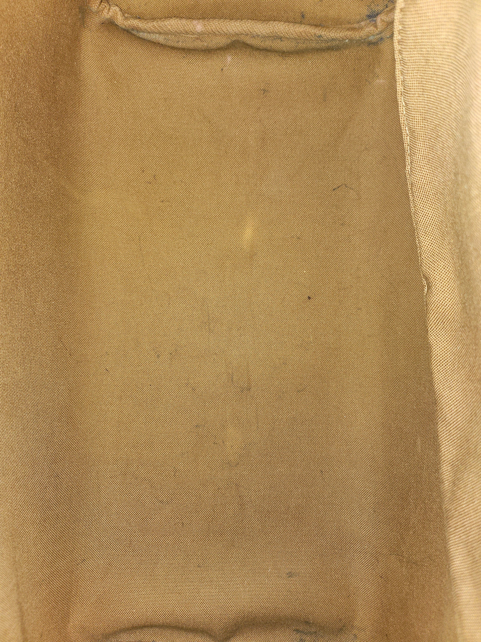 Käytönjälkiä: Nahkaosissa jälkiä, vesileimoja ja patinaa. Metalliosissa (vetoketju) vähäisiä värinmuutoksia ja käytönjälkiä. Sisällä vähäisiä käytönjälkiä (kynänjälkiä).