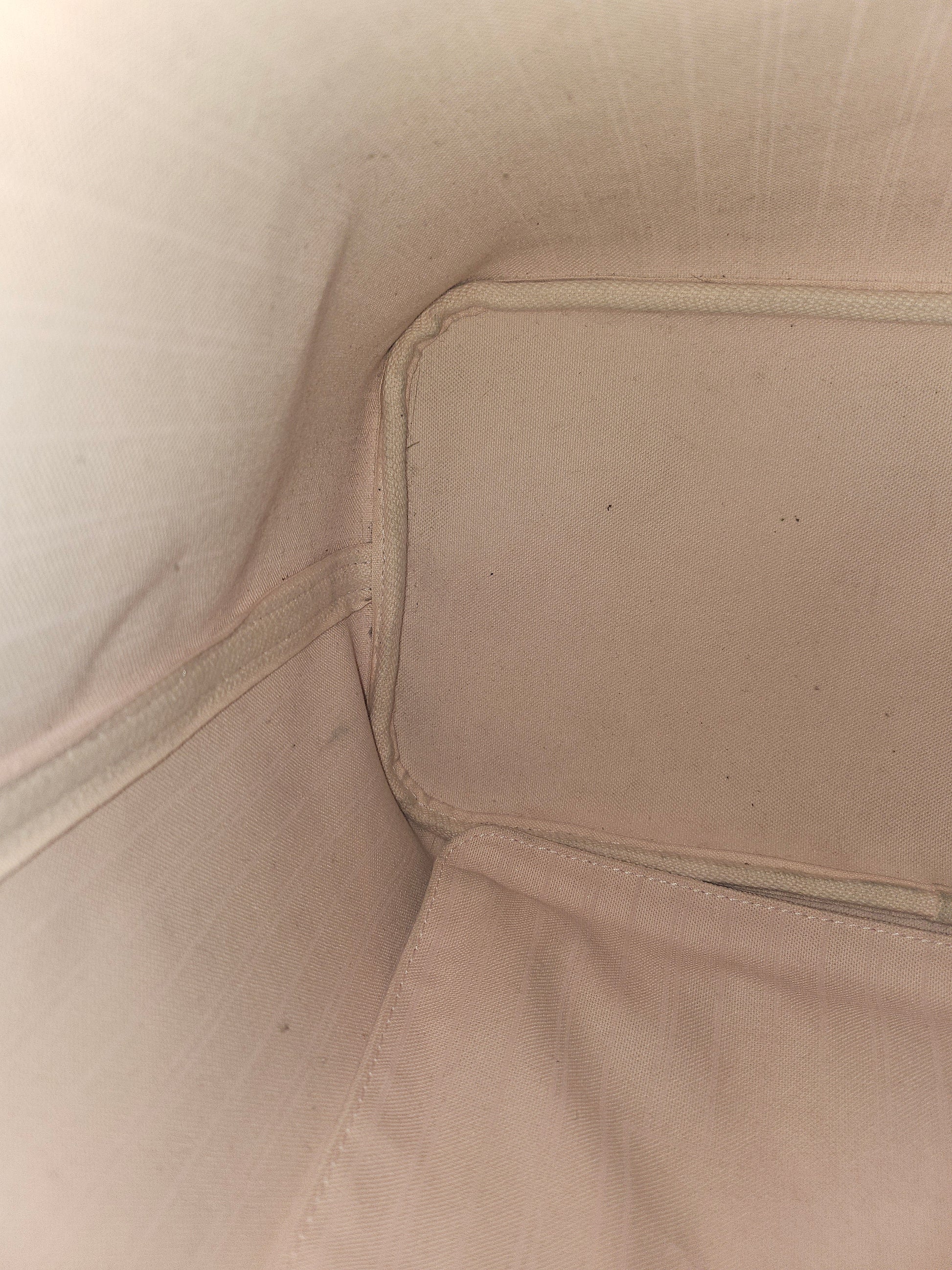 Käytönjälkiä: Kulmissa vähäisiä käytönjälkiä. Sisäkangas on hieman tummunut. Kahvojen reunojen viimeistely on osittain poistettu.