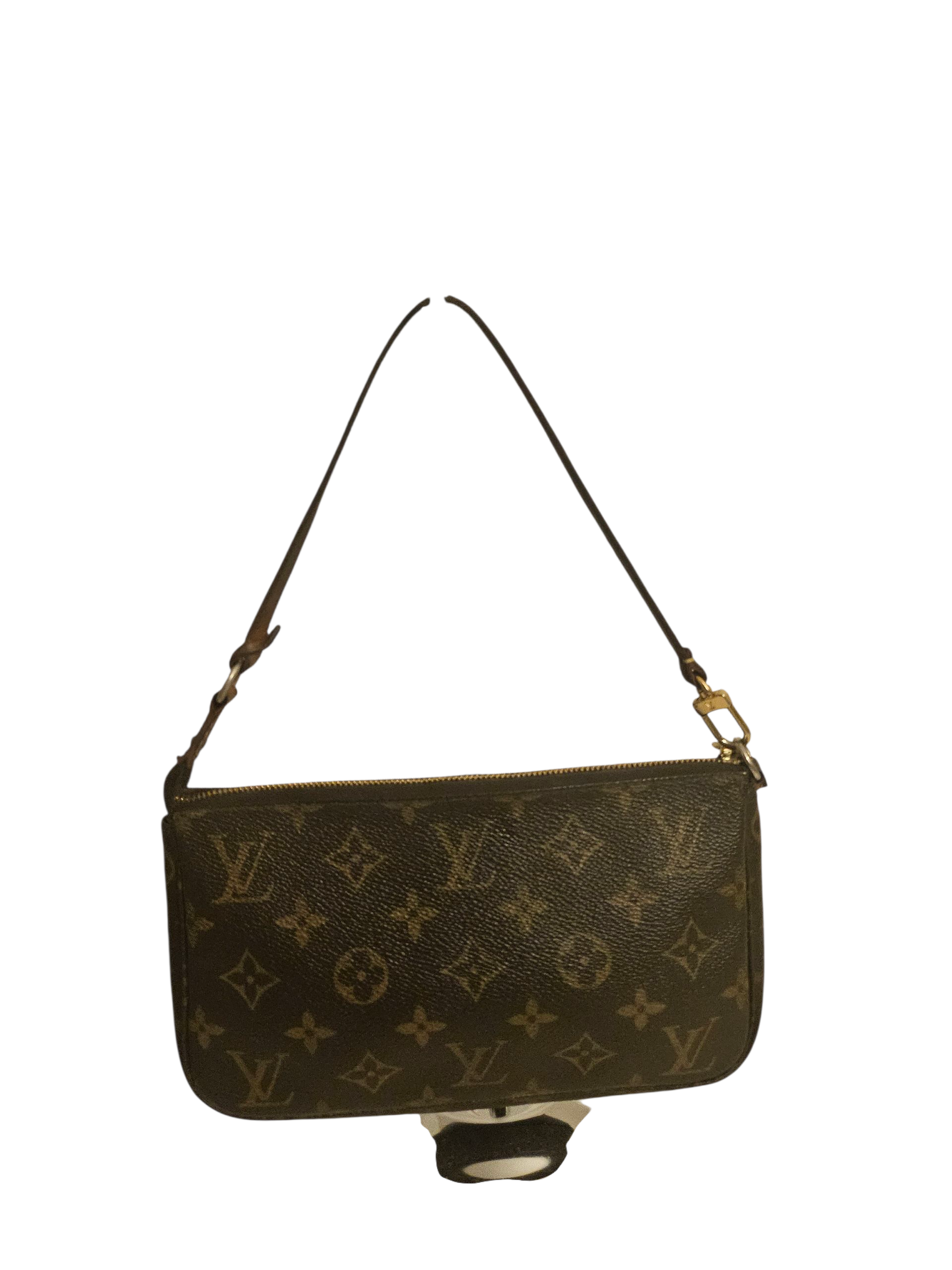Ajaton Louis Vuittonin pieni laukku. Valmistettu ikonisesta kestävästä monogram canvaksesta. Mukana irrotettava merkitön ketju, joten sitä voi käyttää myös crossbodyna. Kaikki pinnat ovat juuri puhdistettu ja nahanhoitoaine on levitetty. Vetoketju toimii moitteettomasti.