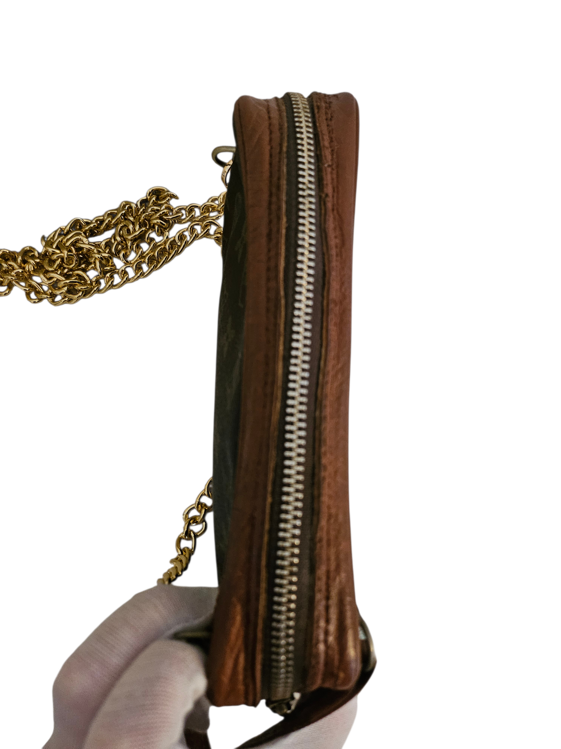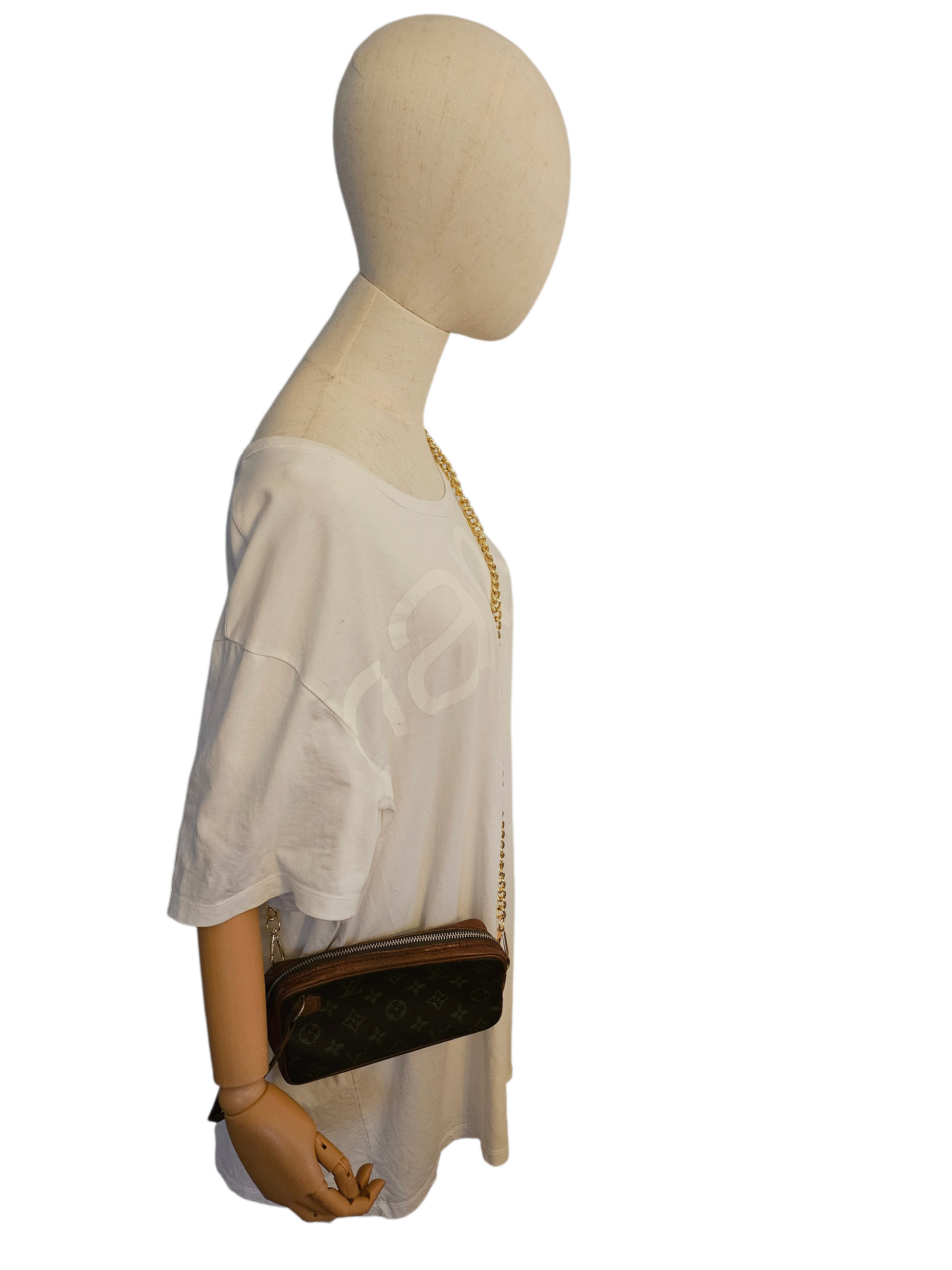 Vintage. Valmistettu 80-luvulla, ennen kuin LV alkoi käyttää datekoodeja. Muutettiin laukuksi asentamalla silmuruuvi. Nyt sitä voi käyttää eri hihnoilla joko crossbody- tai olkalaukkuna. Kätevänkokoinen. Kaikki pinnat ovat juuri puhdistettu.
