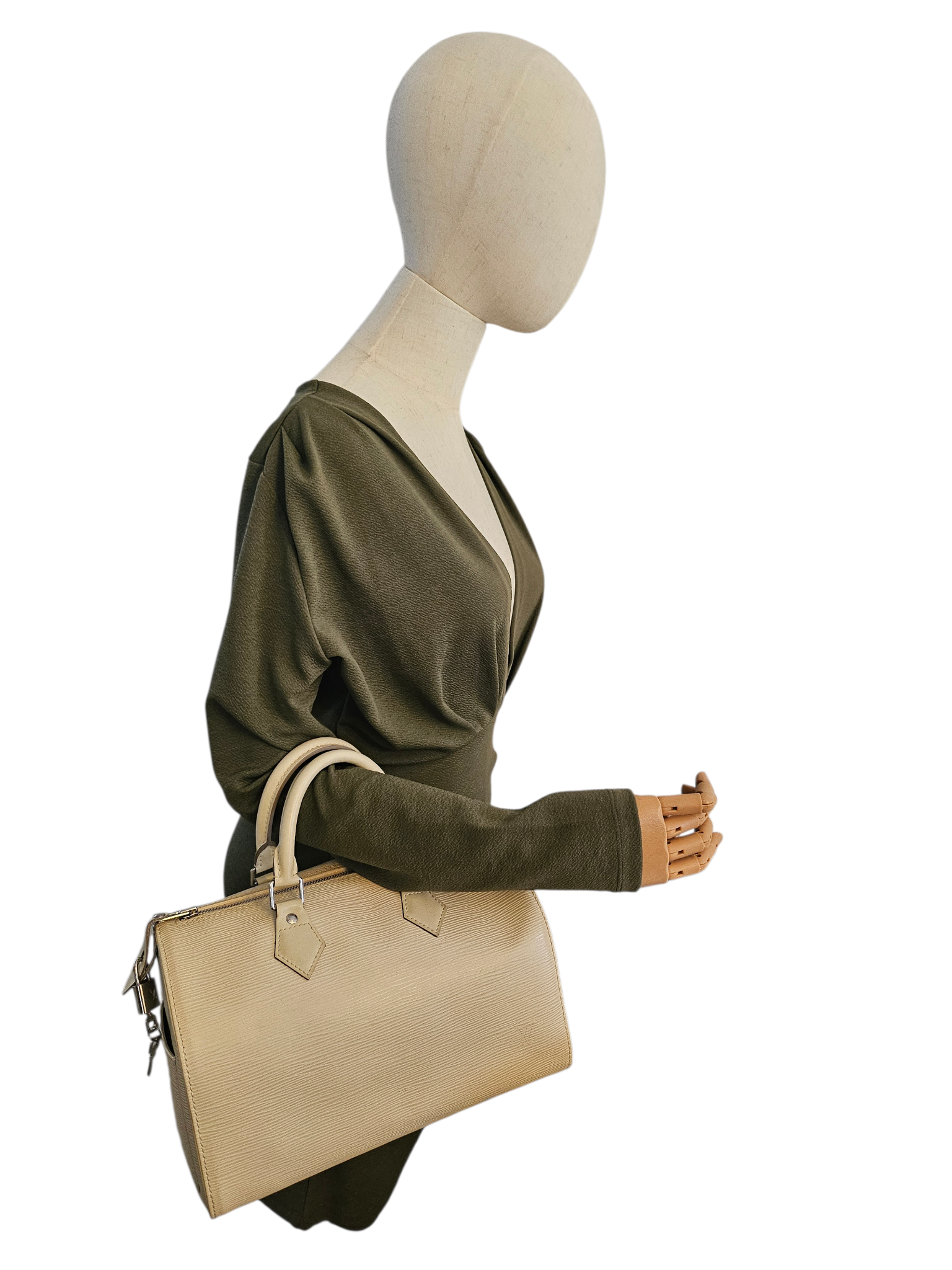 Speedy 25 on pienempi kuin Speedy 30, joka on yksi merkin suosituimmista laukuista, joten se näyttää tyylikkäämmältä. Silti on tilava ja käytännöllinen. Vetoketju toimii moitteettomasti. Kaikki pinnat ovat juuri puhdistettu.