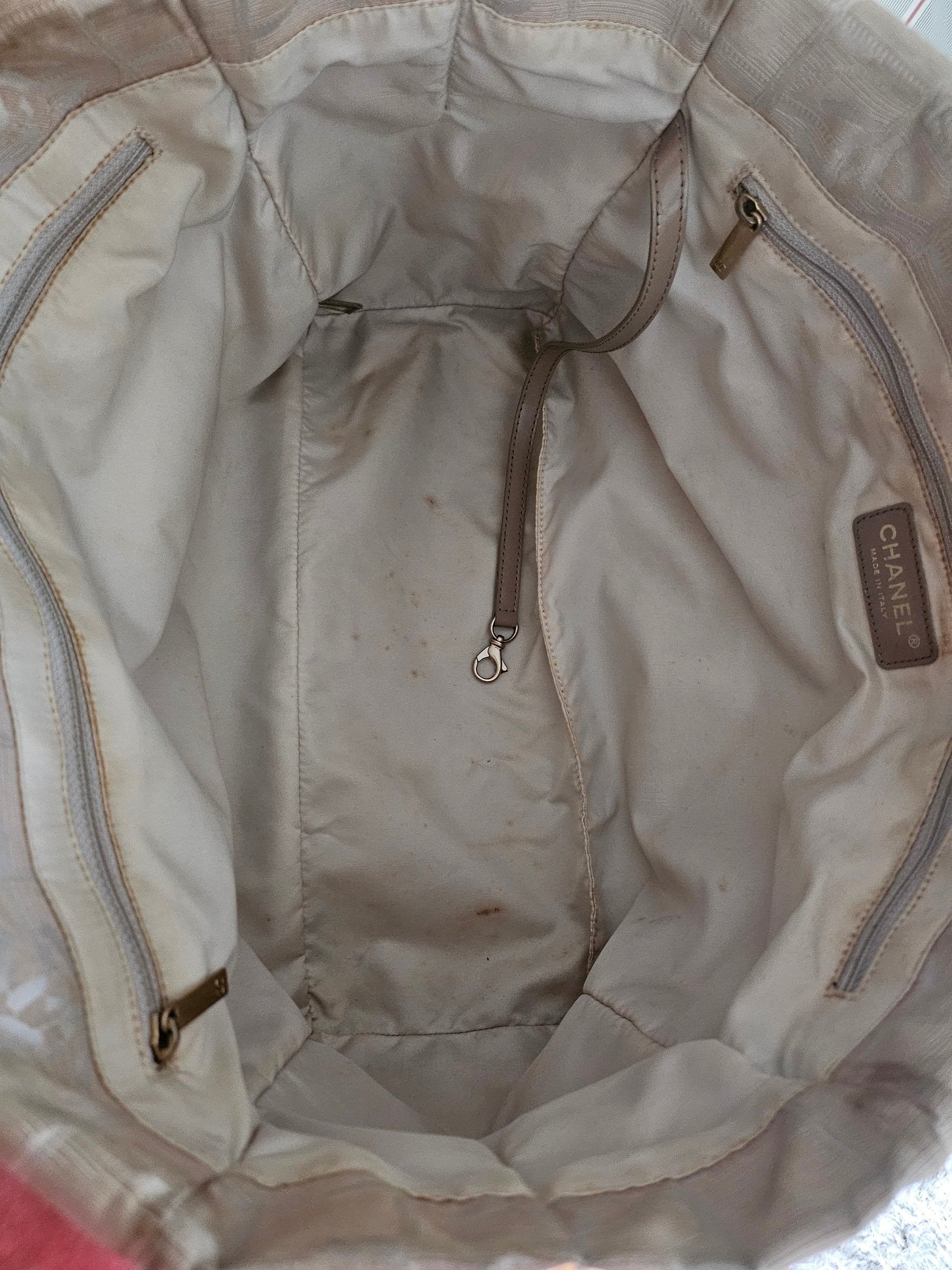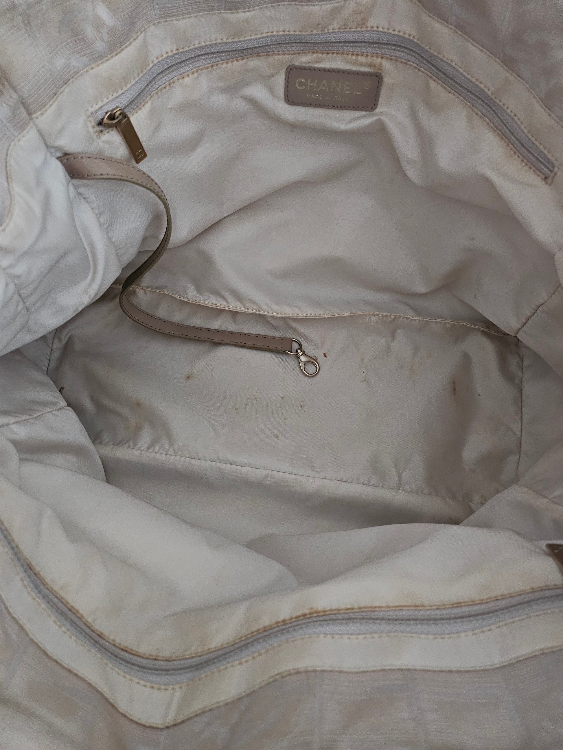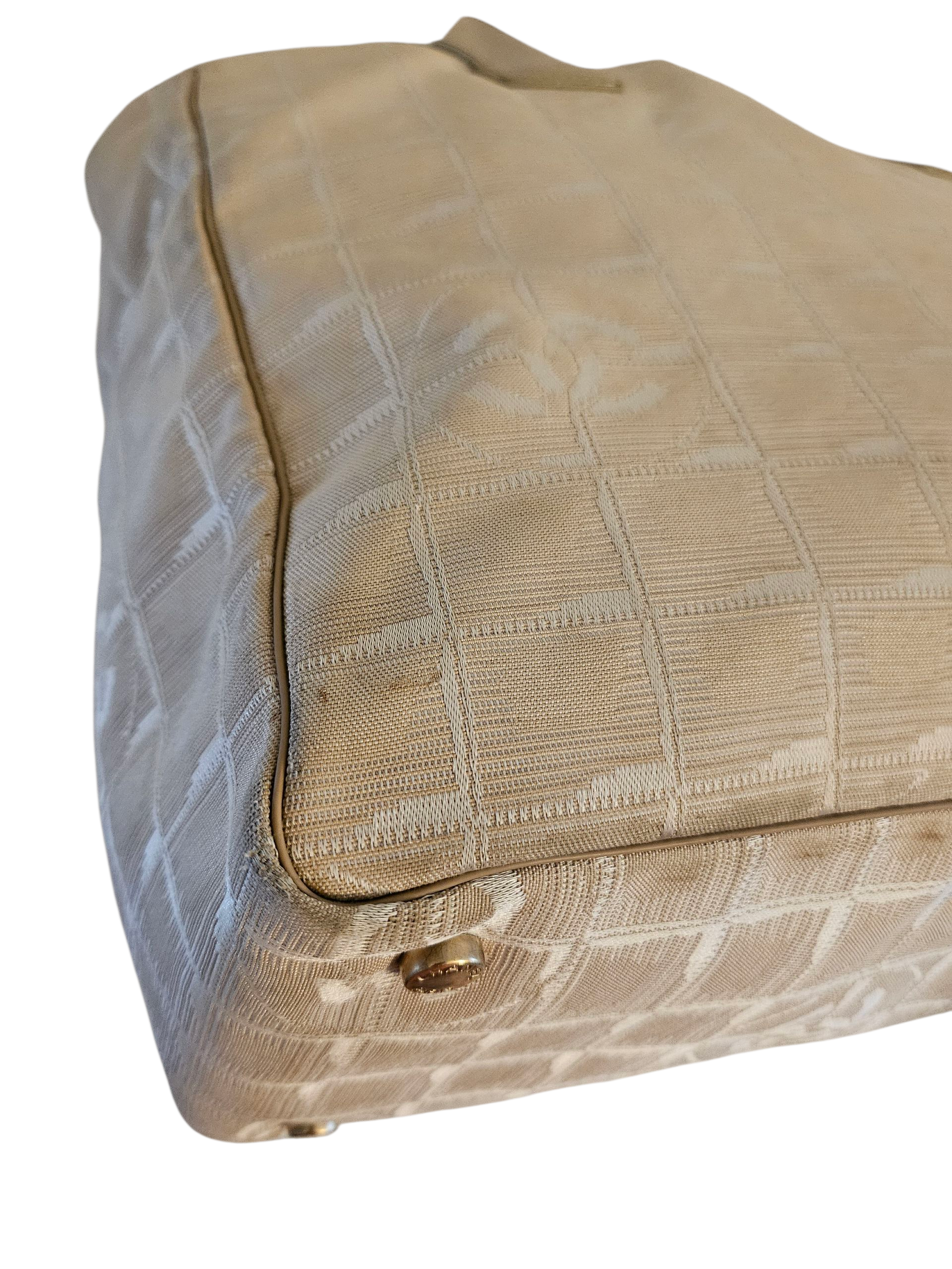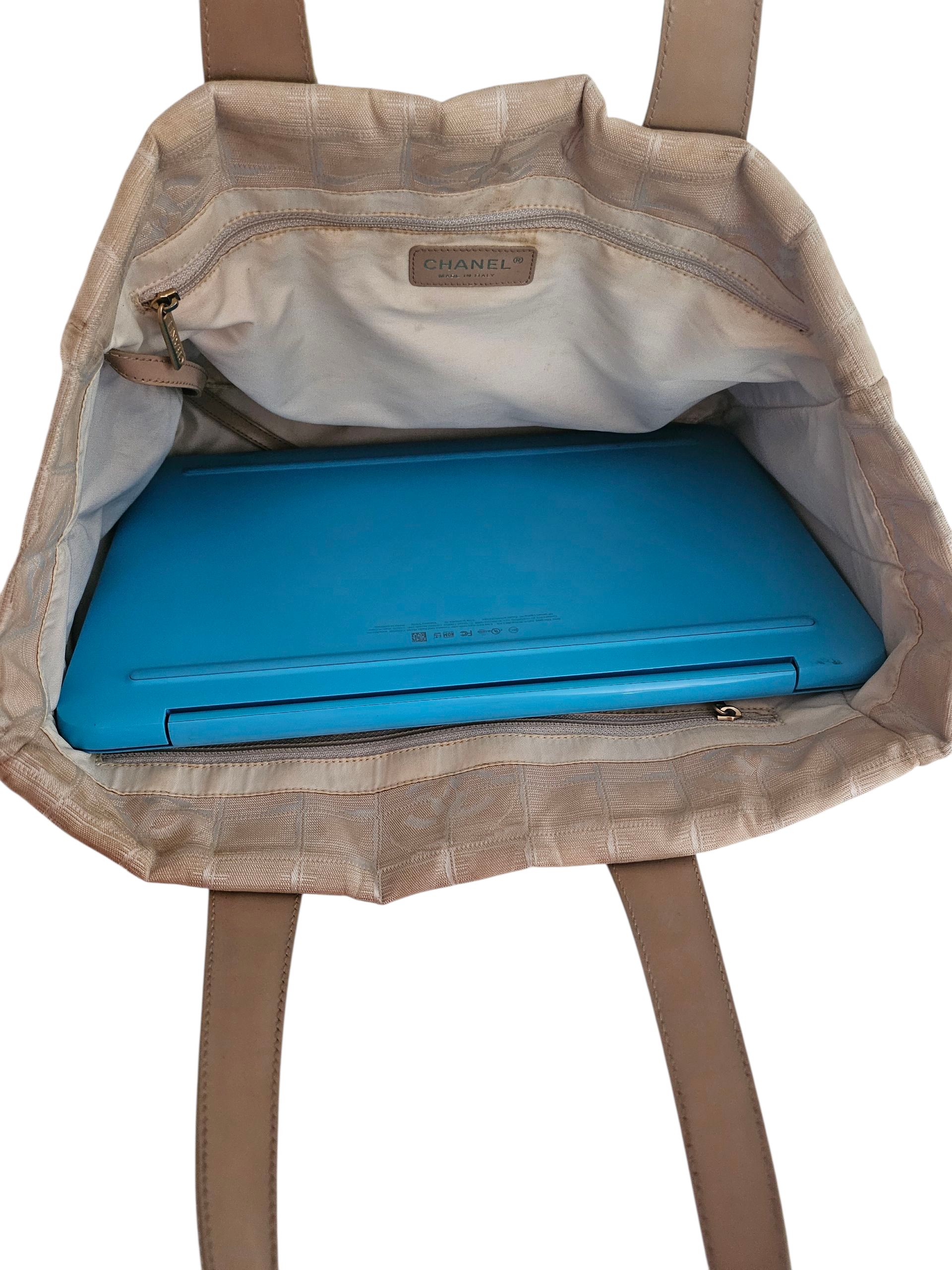 Travel line collection was created by Karl Lagerfeld for Chanel in 2000s. Spacious tote bag for daily use and work, laptop fits well. Two zipper pockets inside, both zippers work properly. All surfaces were just cleaned.