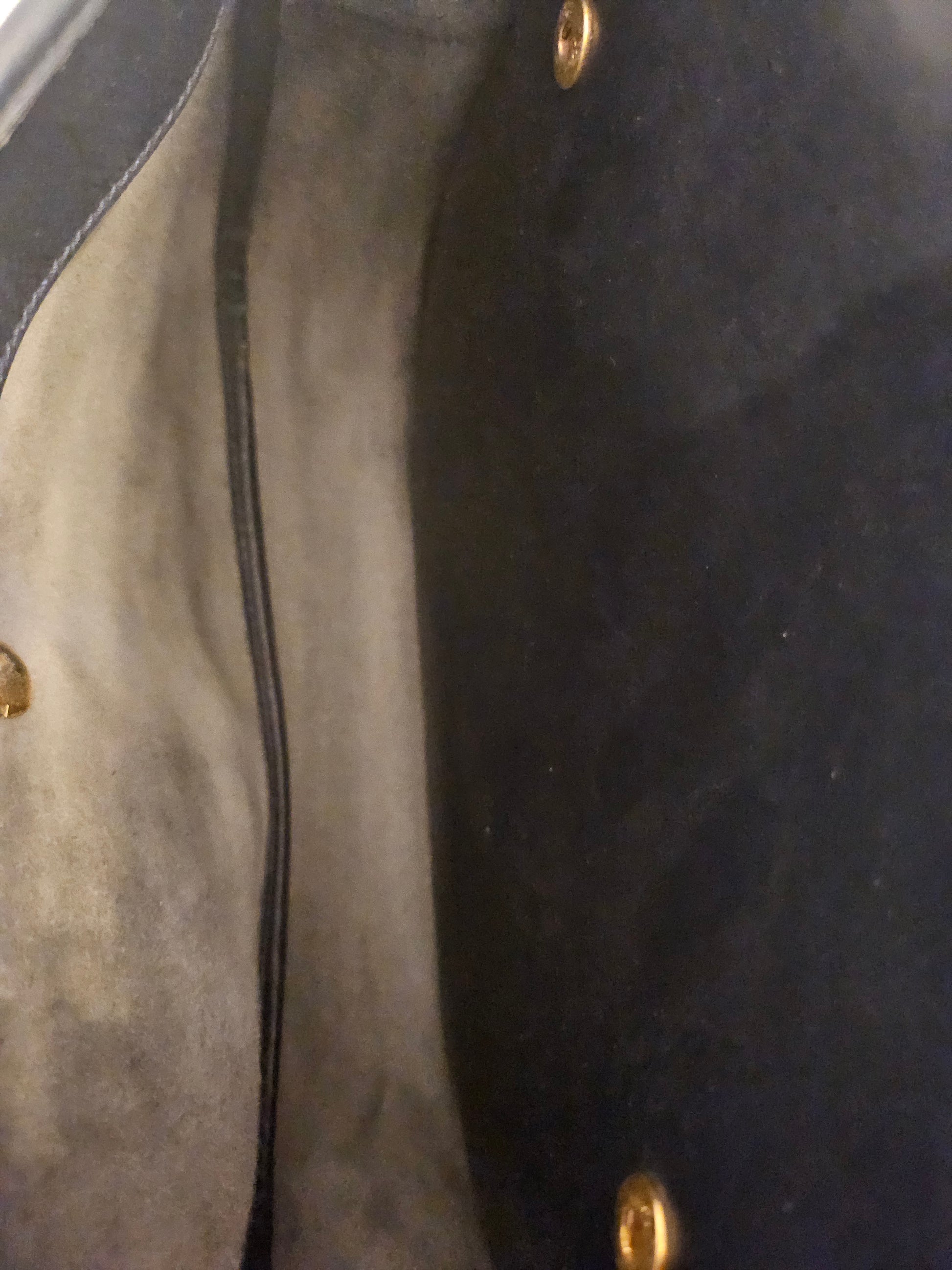 Signs of use: Marks and scratches on the surface. Discoloration on metal parts. Inside surface of bag and pouch is removed. Outside pocket's surface is peeling off and dusty.