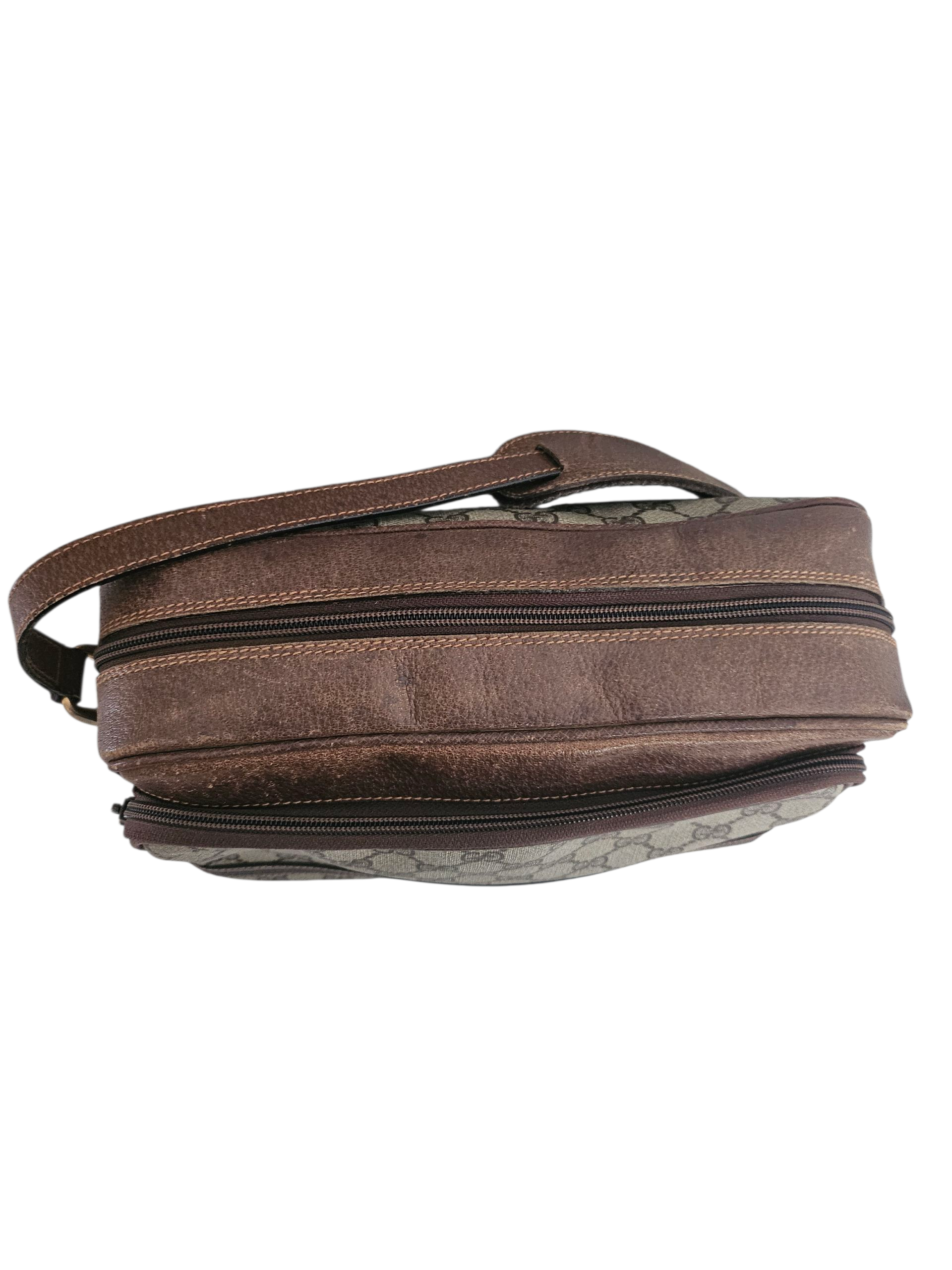 Vintage unisex crossbody bag for careless daily use. Made from durable and recognizable GG monogram canvas. Handy size. Two compartments, zipper pocket inside. All zippers work properly. Adjustable shoulder strap allows to wear it as a shoulder bag or as a crossbody. All surfaces were just cleaned.