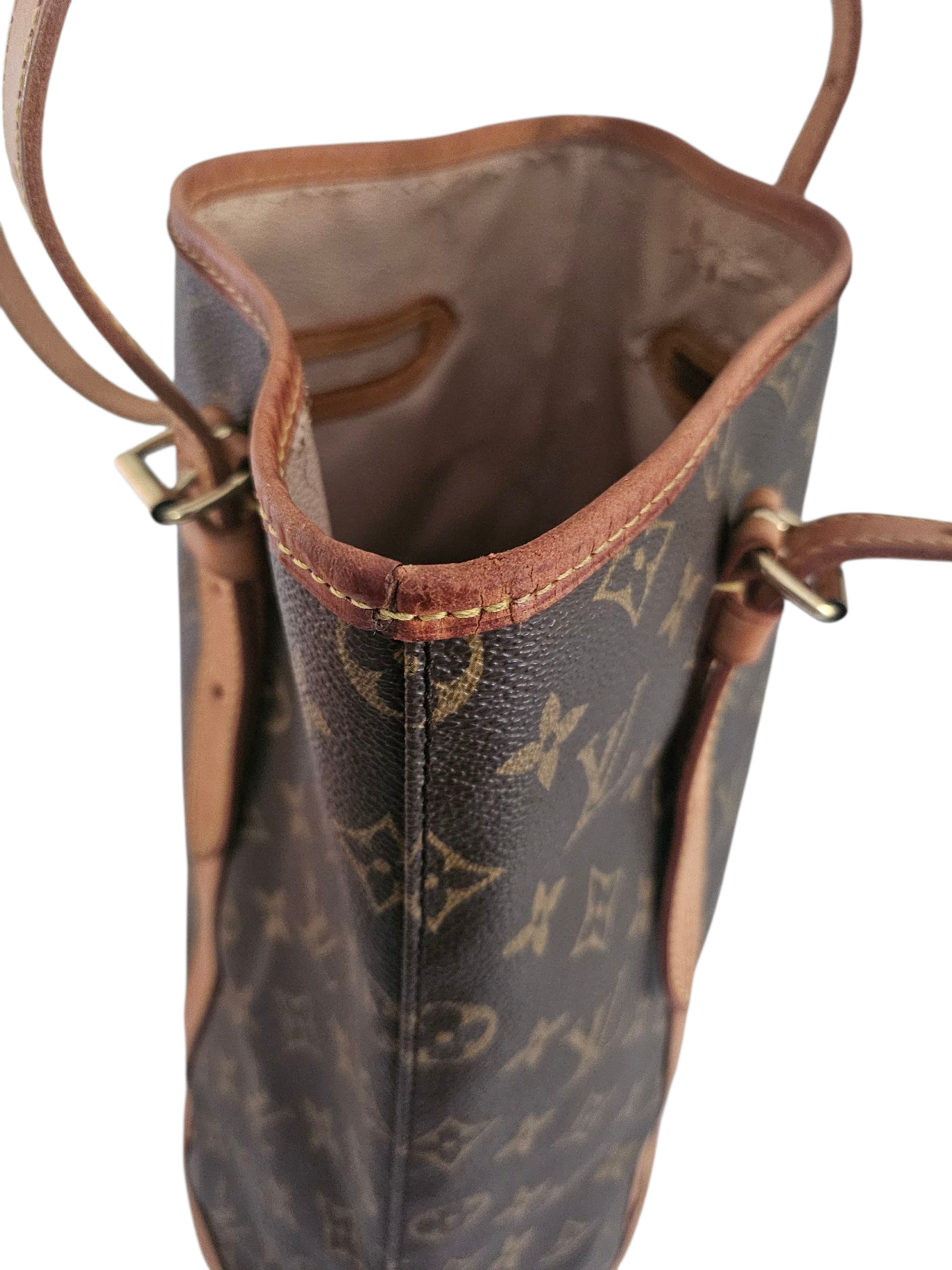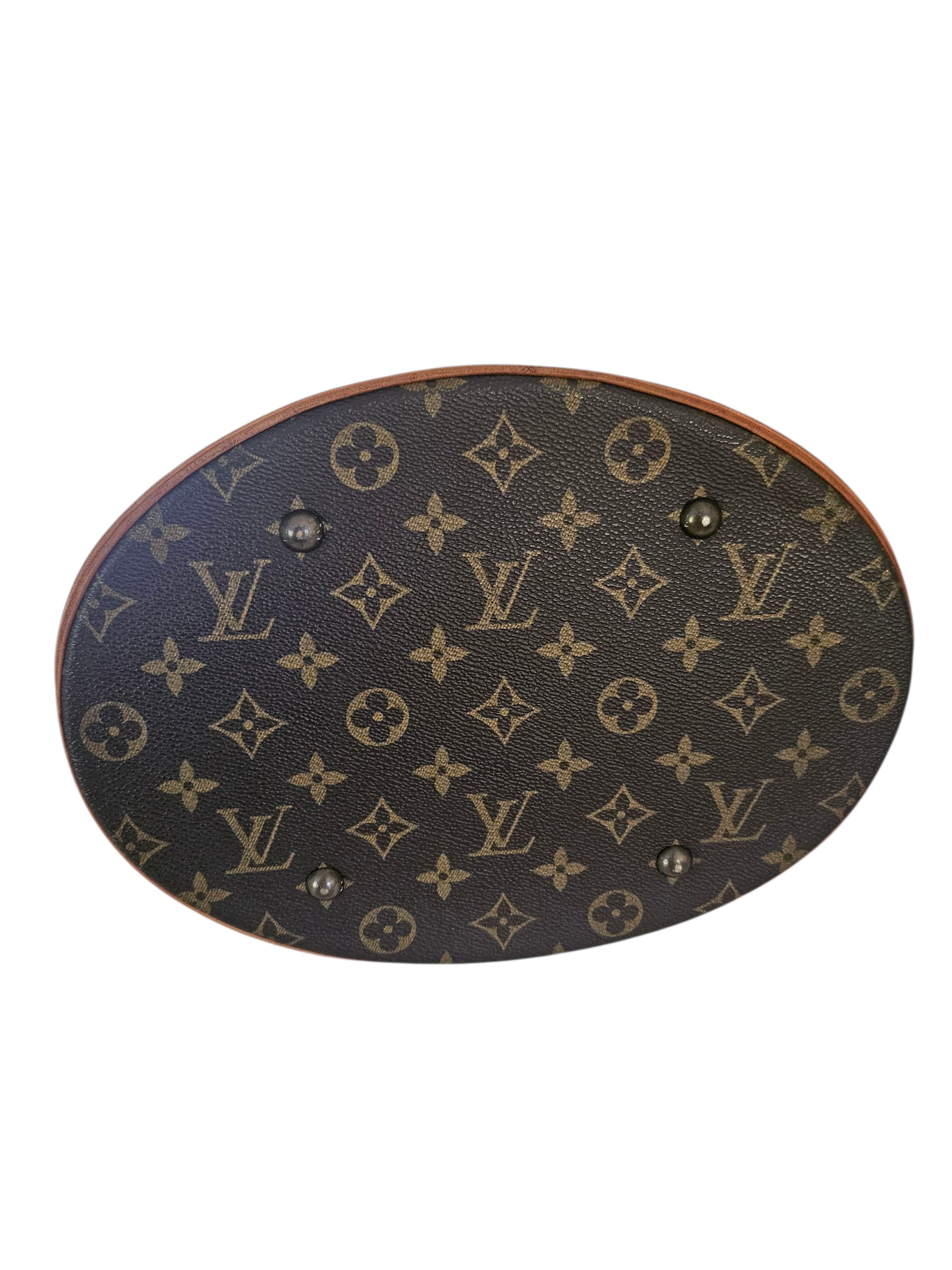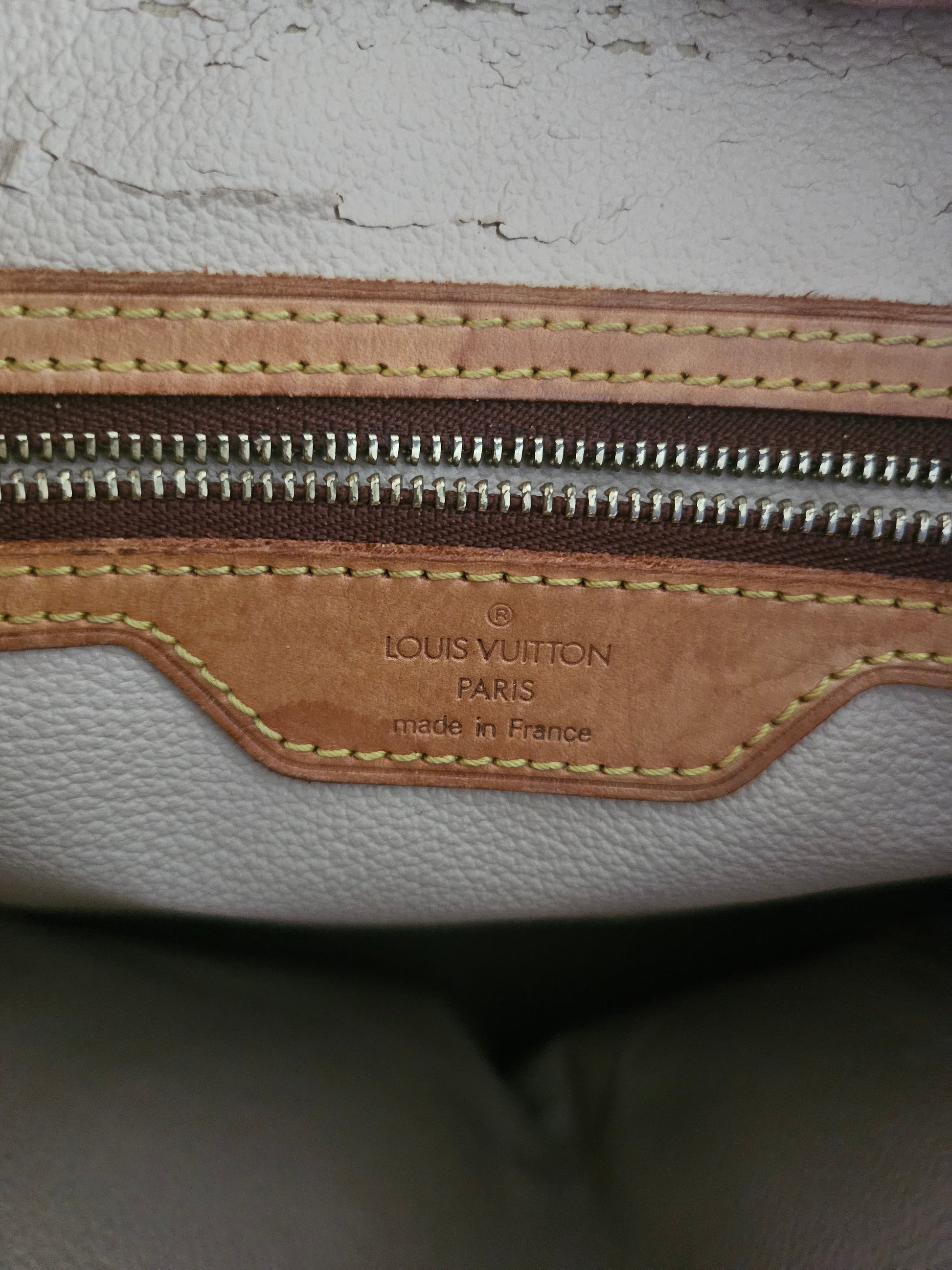 Signs of use: Inside material is slightly torn (not sticky). Discoloration on metal parts. Pen marks inside of pocket. Signs of usage and watermarks on the leather parts.
