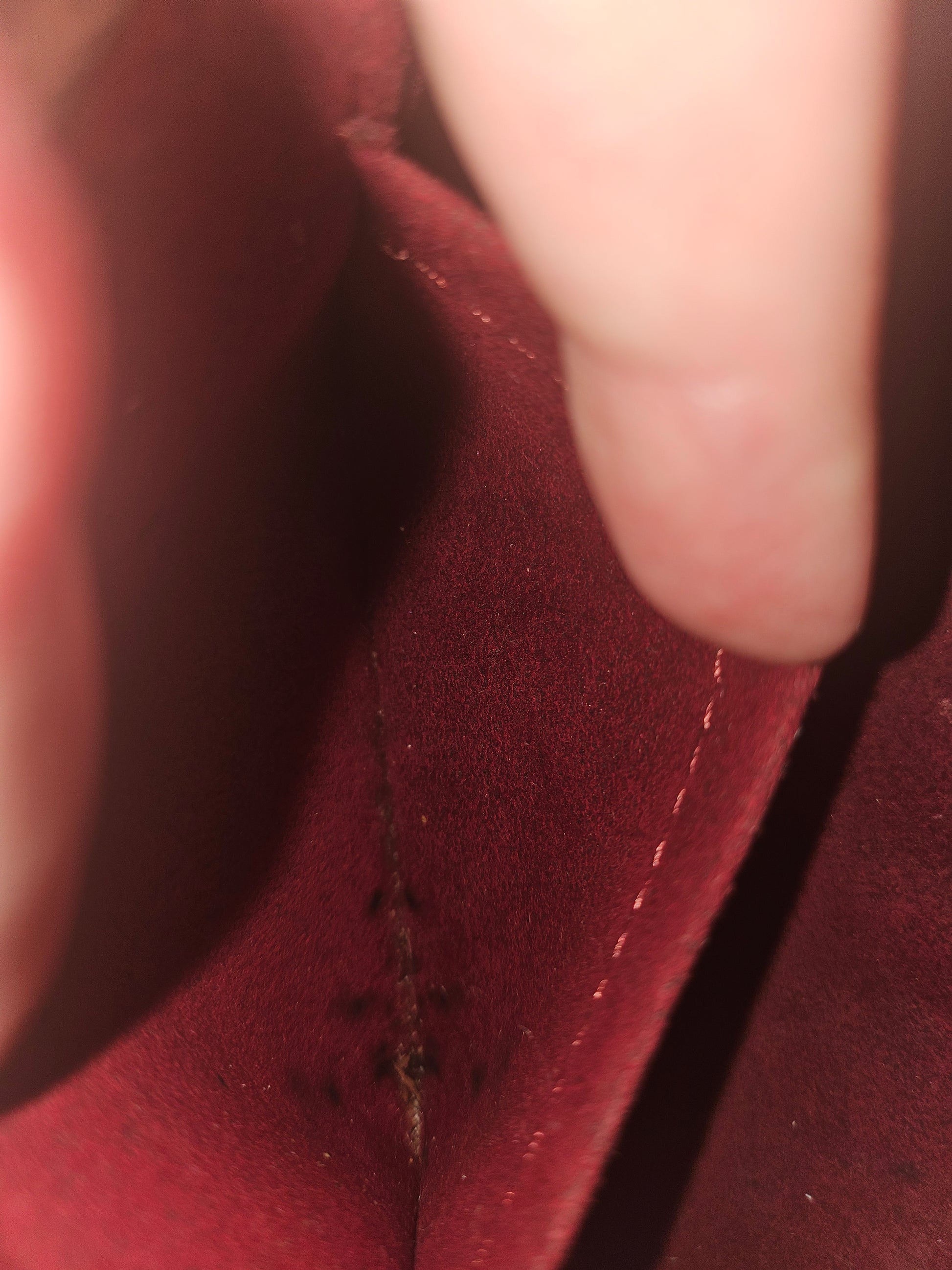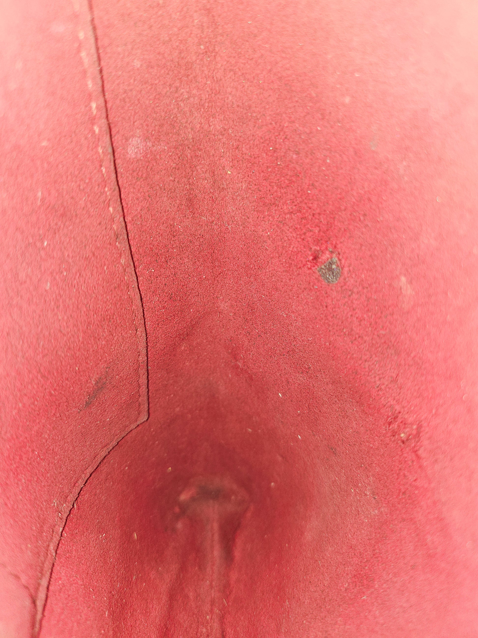 Signs of use: Bolt is installed (without extra holes). Signs of usage inside. Discoloration and signs of usage on leather and metal parts. Discoloration and signs of usage on the canvas (scratch but no cracks). Zipper's fabric has darkened.