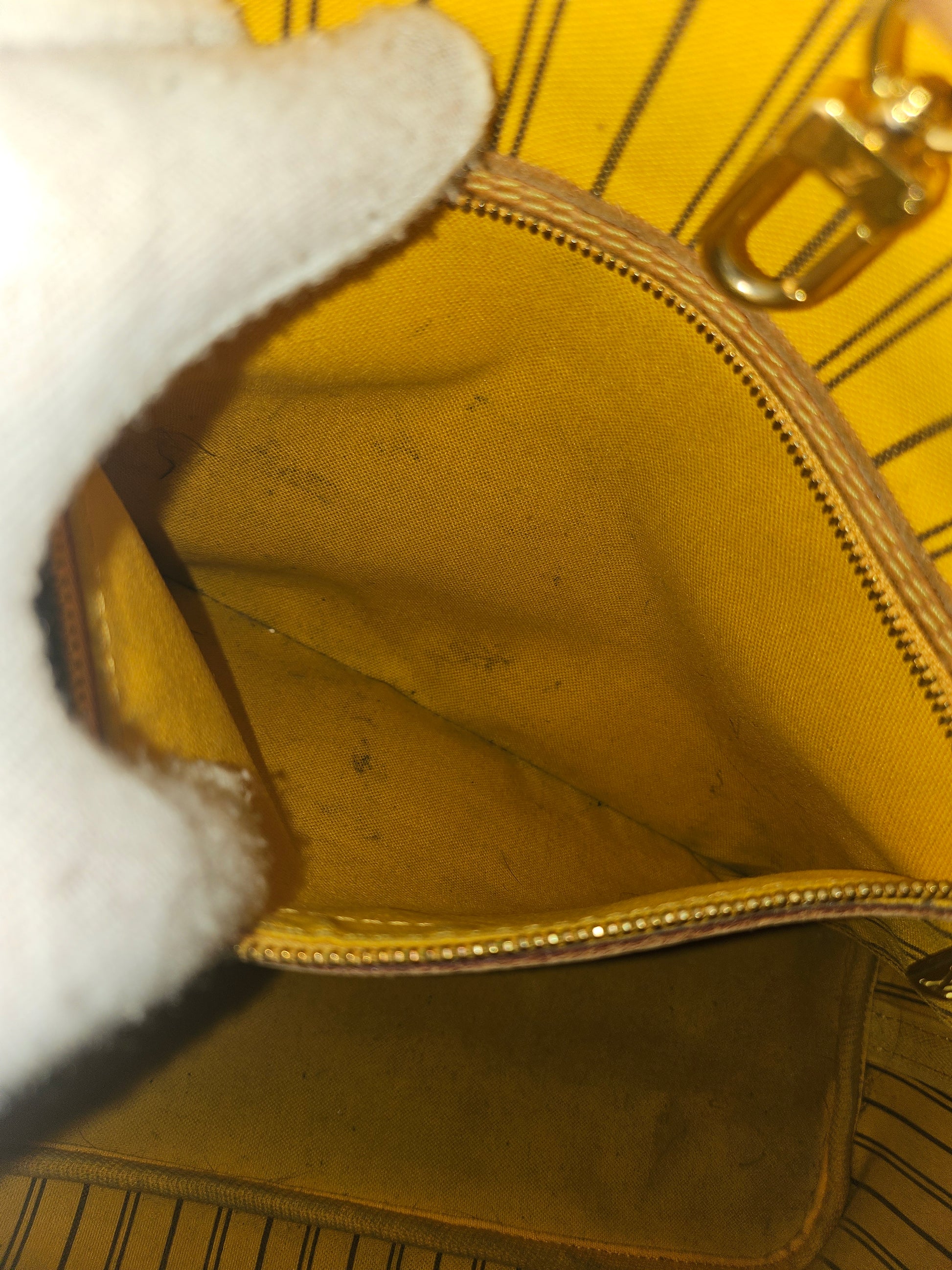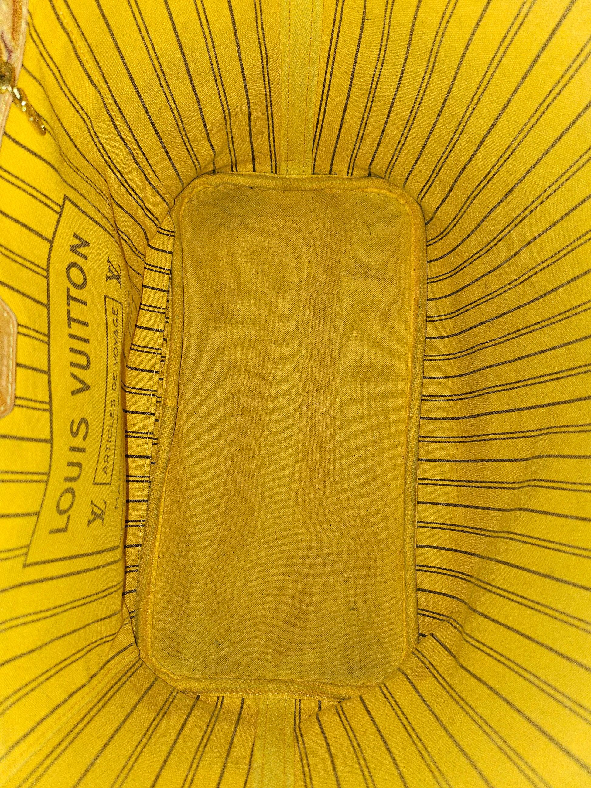 One of the most popular and recognizable bag of the brand, Neverfull in middle MM size with rare Mimosa interior. Colors fit well for every outfit, canvas is durable. All surfaces were just cleaned.