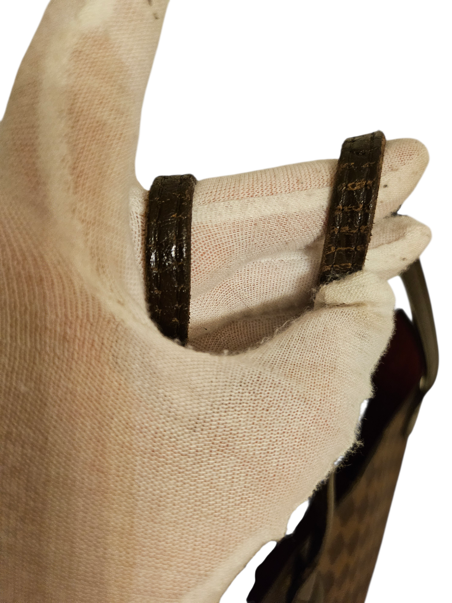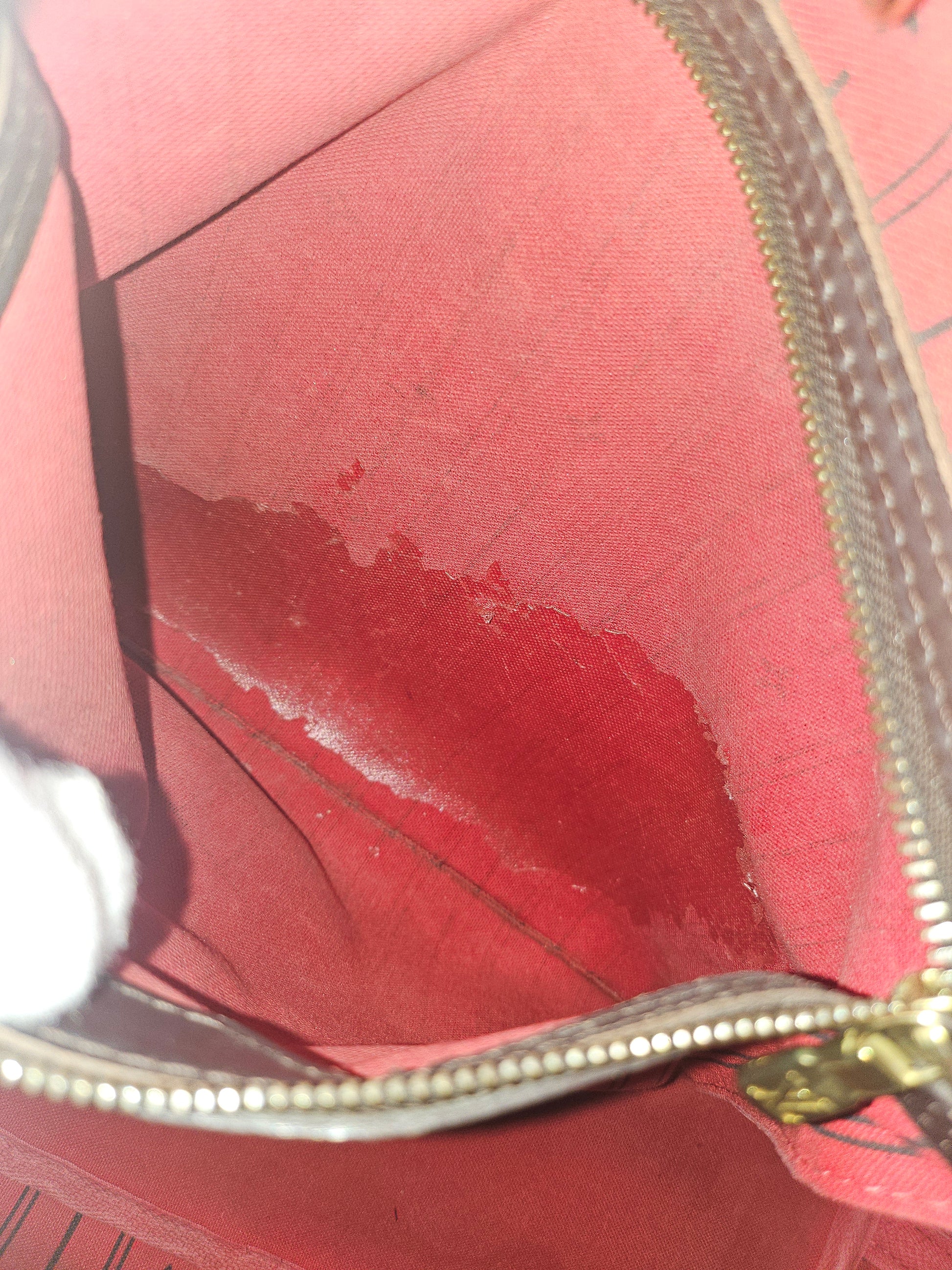 Signs of use: Signs of usage inside. Inside pocket's plastic surface is partially removed. Cracks on the leather on top of the bag. Signs of usage on the handles. Discoloration on metal parts. Signs of usage on the leather parts and in the corners were repainted by non-brand. One corner is worn out.