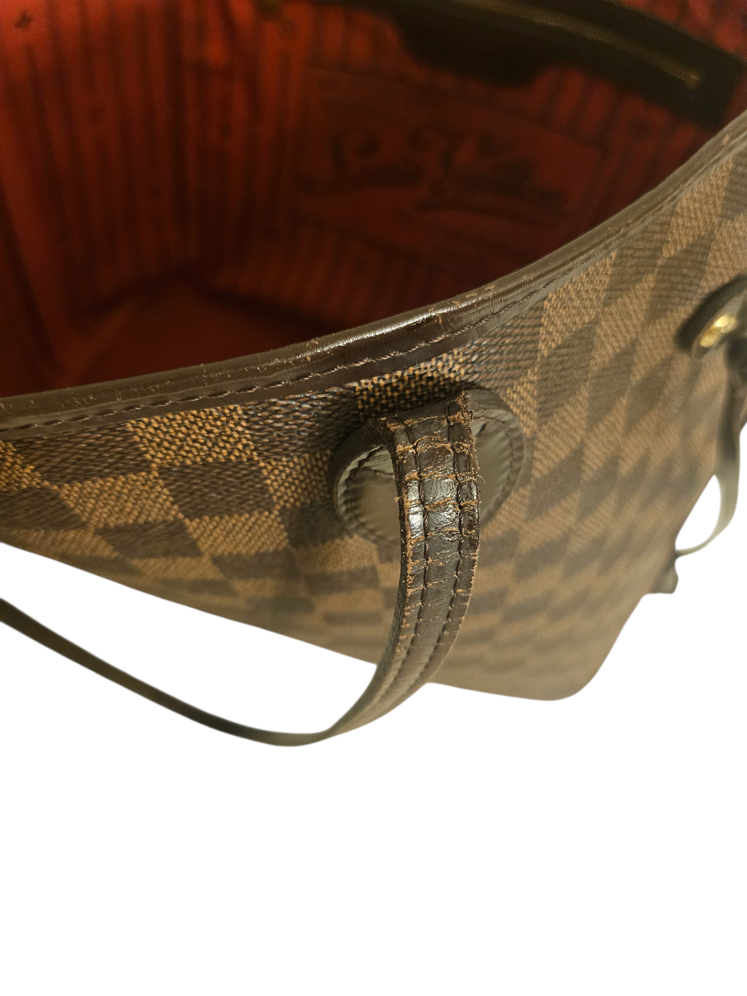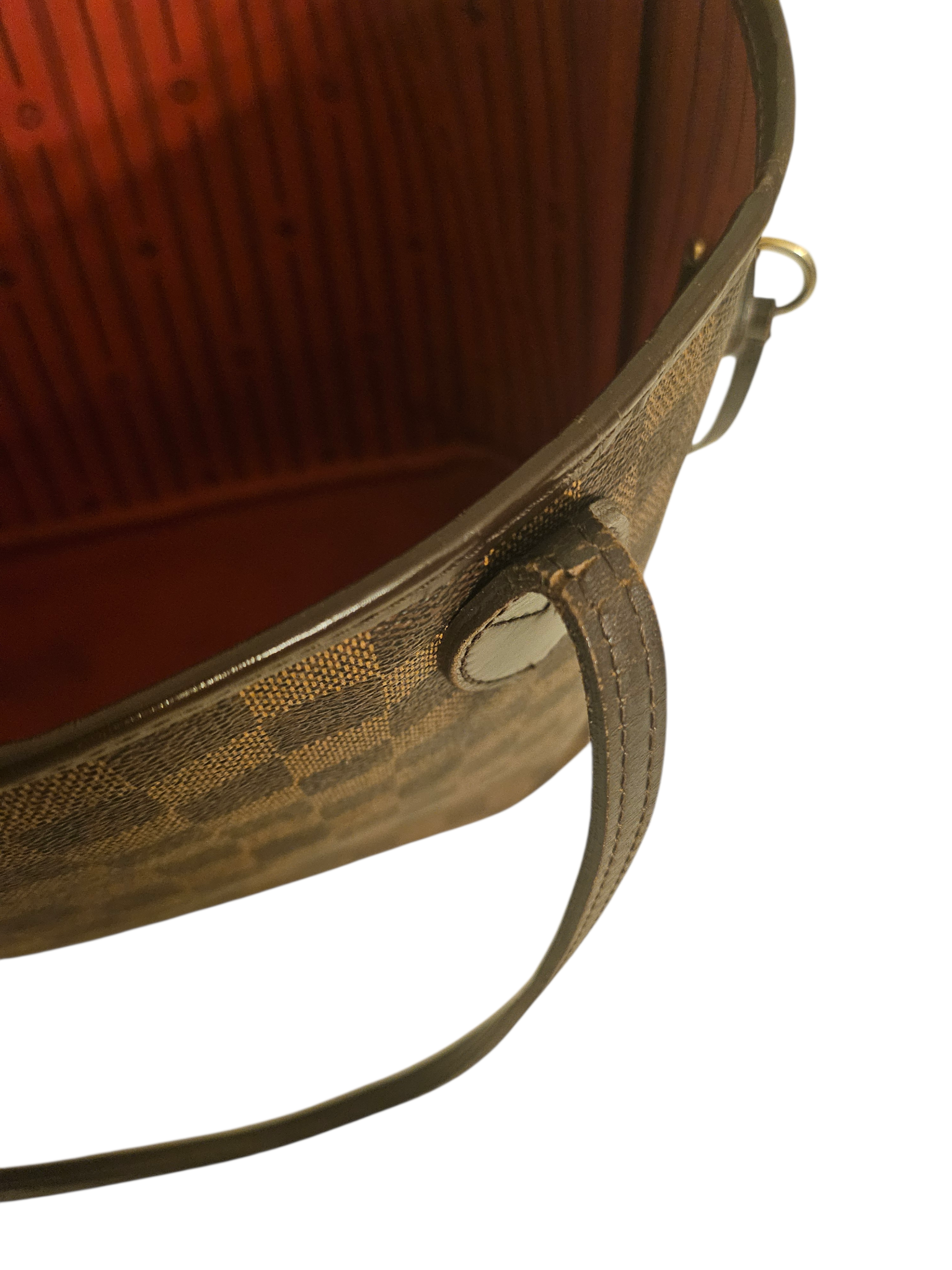 One of the most popular and recognizable bag of the brand, Neverfull in middle MM size. Made from Damier Ebene canvas which is durable and resistant to scratches. All surfaces were just cleaned.
