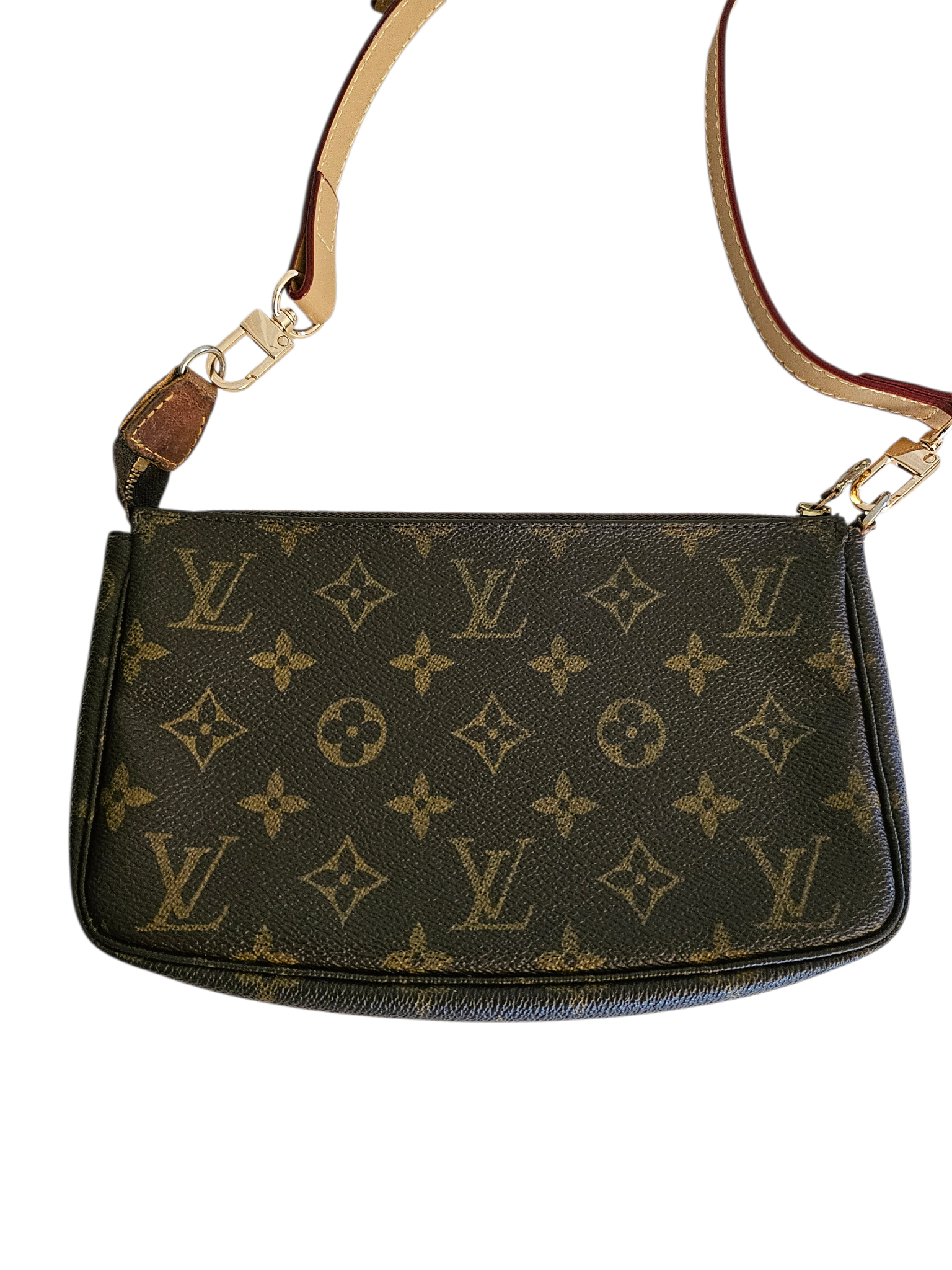 Timeless small bag from Louis Vuitton. Made from iconic durable Monogram canvas. Size allows to fit all daily essentials. Comes with long non-brand (not LV) adjustable strap so can be used as a crossbody or shoulder bag. Zipper works properly.