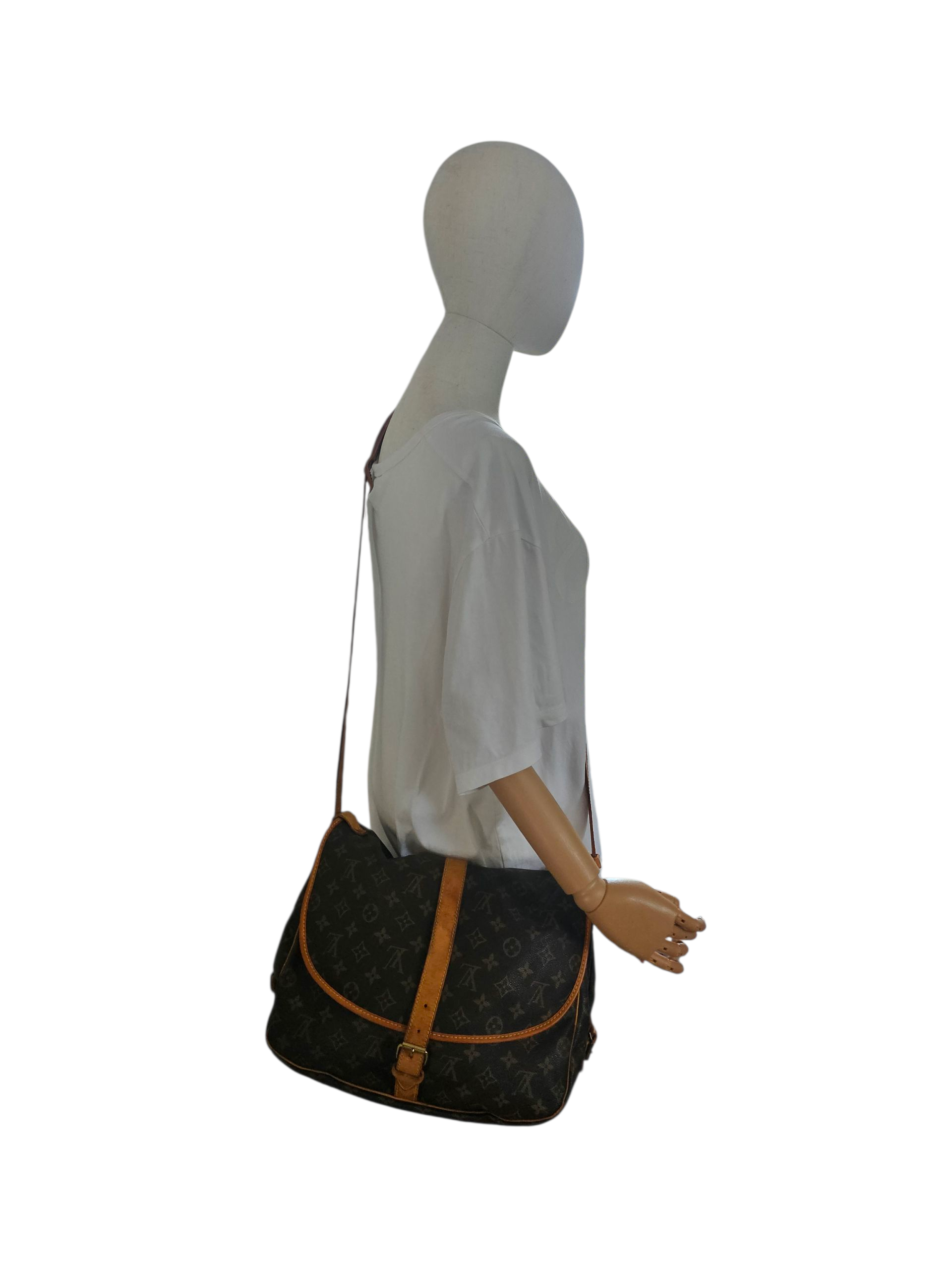 Signs of use: Watermarks and signs of usage on the leather parts. Leather surface is partially dried and cracked. Discoloration on metal parts. Minor signs of usage inside.