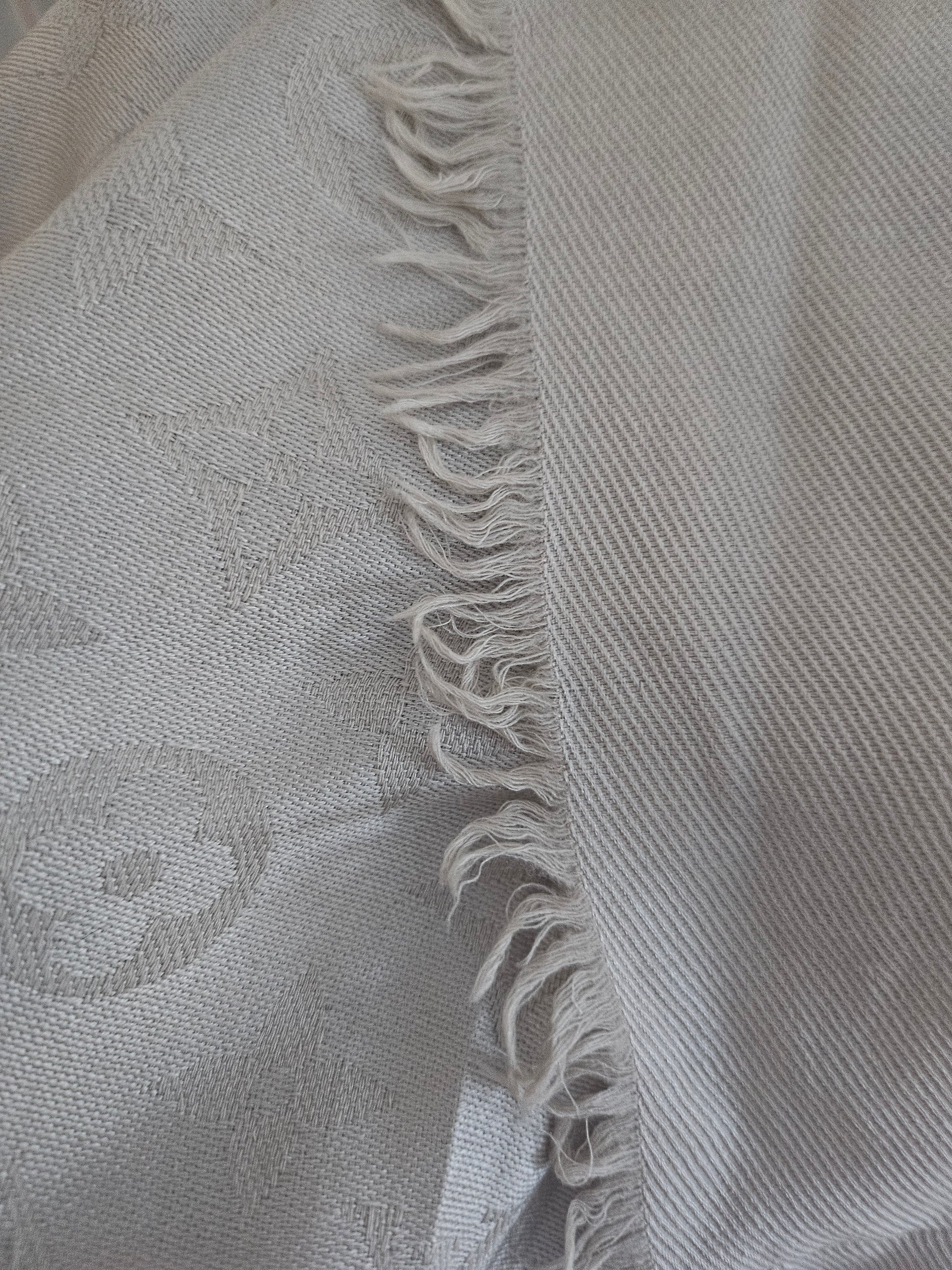 Gorgeous shawl from Louis Vuitton is made from wool and silk. Warm and gentle to the skin. Can be worn around neck or on shoulders. Current retail price is 550€.
