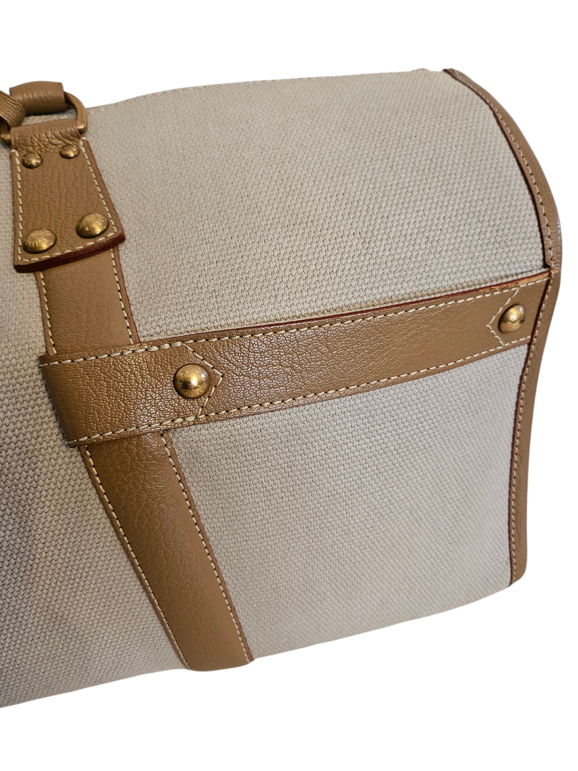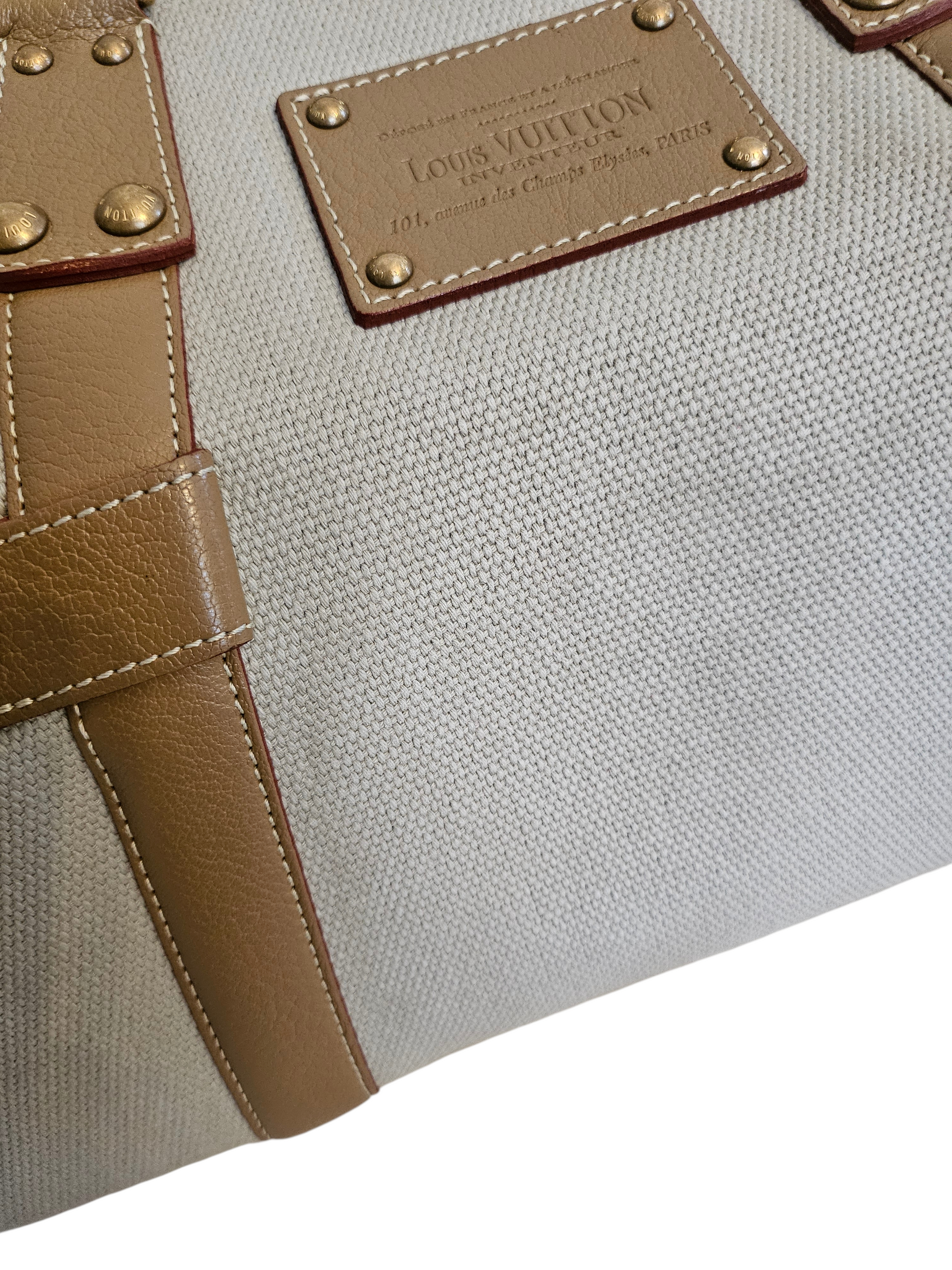 Limited edition, was designed in 2000s for a celebration of the 150th anniversary of Louis Vuitton in the Louis Vuitton Trianon Canvas. The original Voile Trianon canvas was first created in 1858. Bag is featured by Suhali goat leather and varnished polished brass hardware. Zipper works properly.