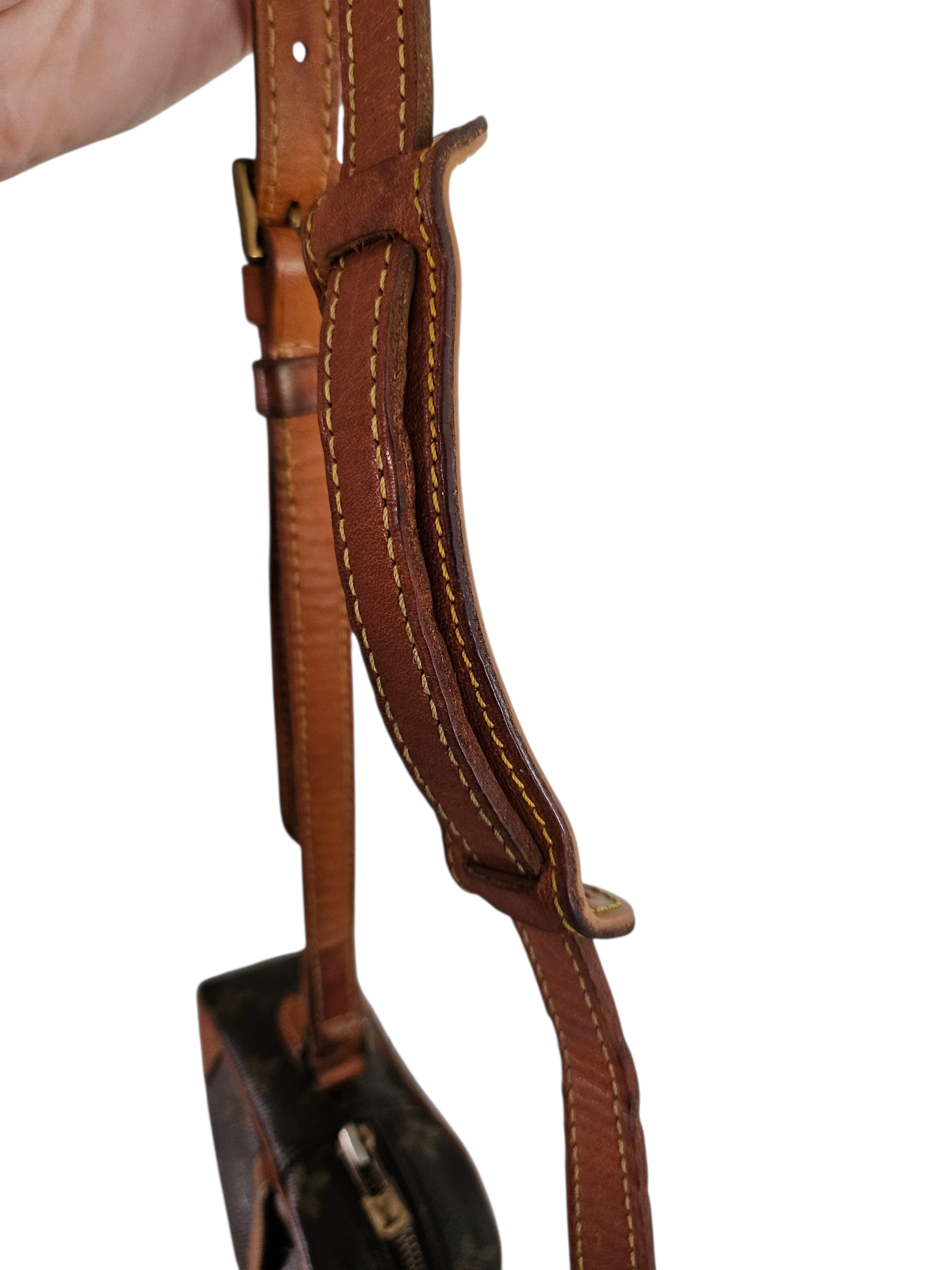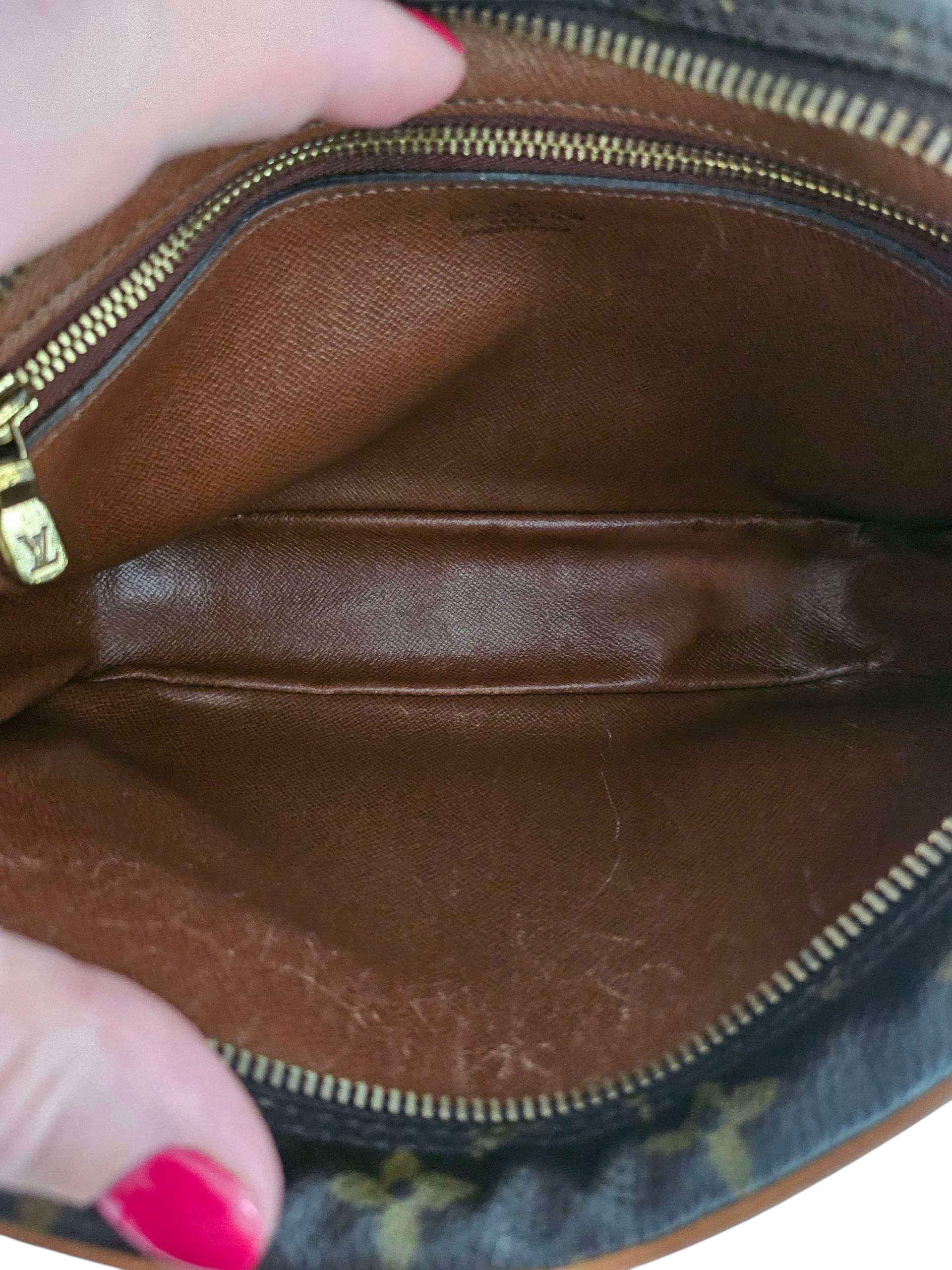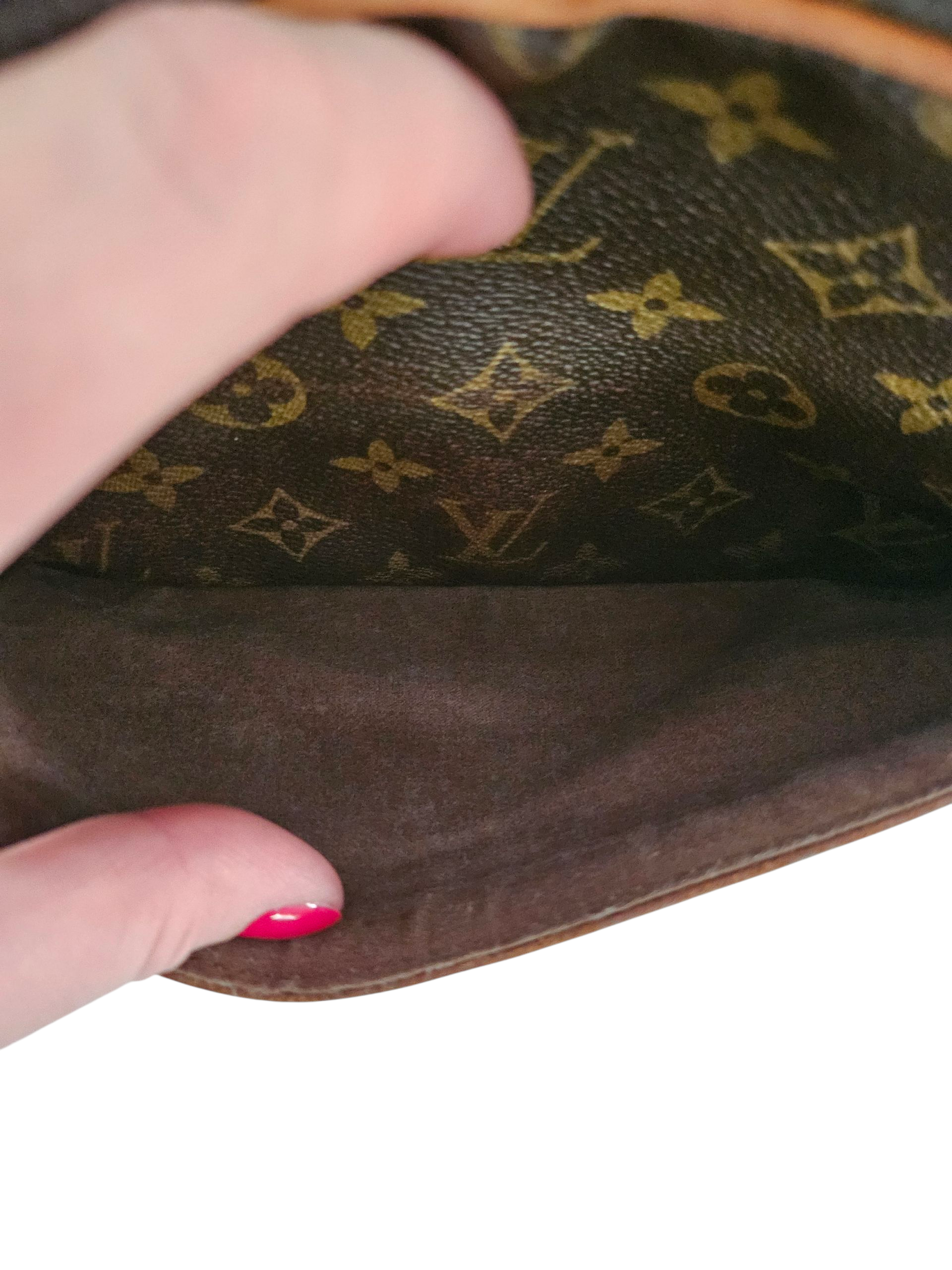 Vintage. Unisex. Made from iconic Monogram canvas. Handy size. Zipper closure and zipper pocket inside, both zippers work properly. No cracks on canvas. Adjustable shoulder strap, can be worn as a shoulder bag or as a crossbody. All surfaces were just cleaned, leather conditioner applied.