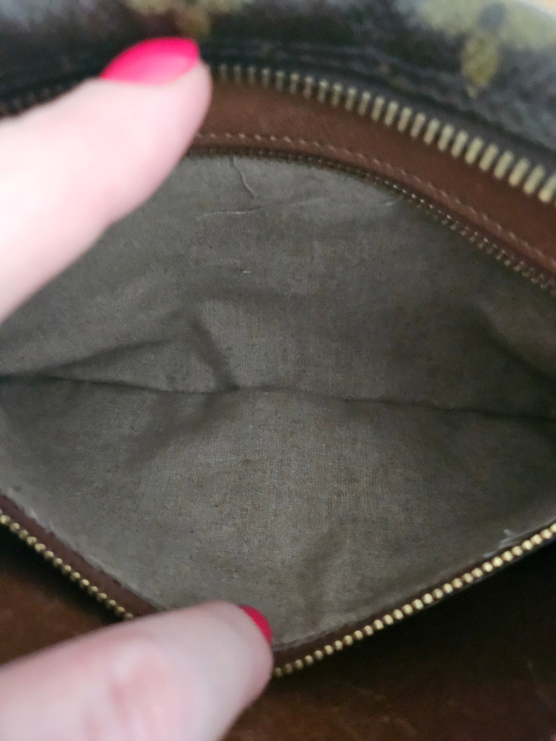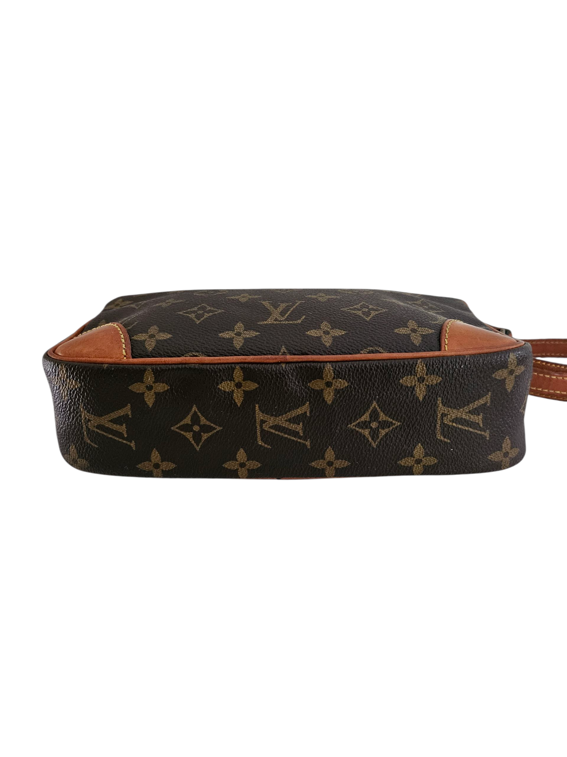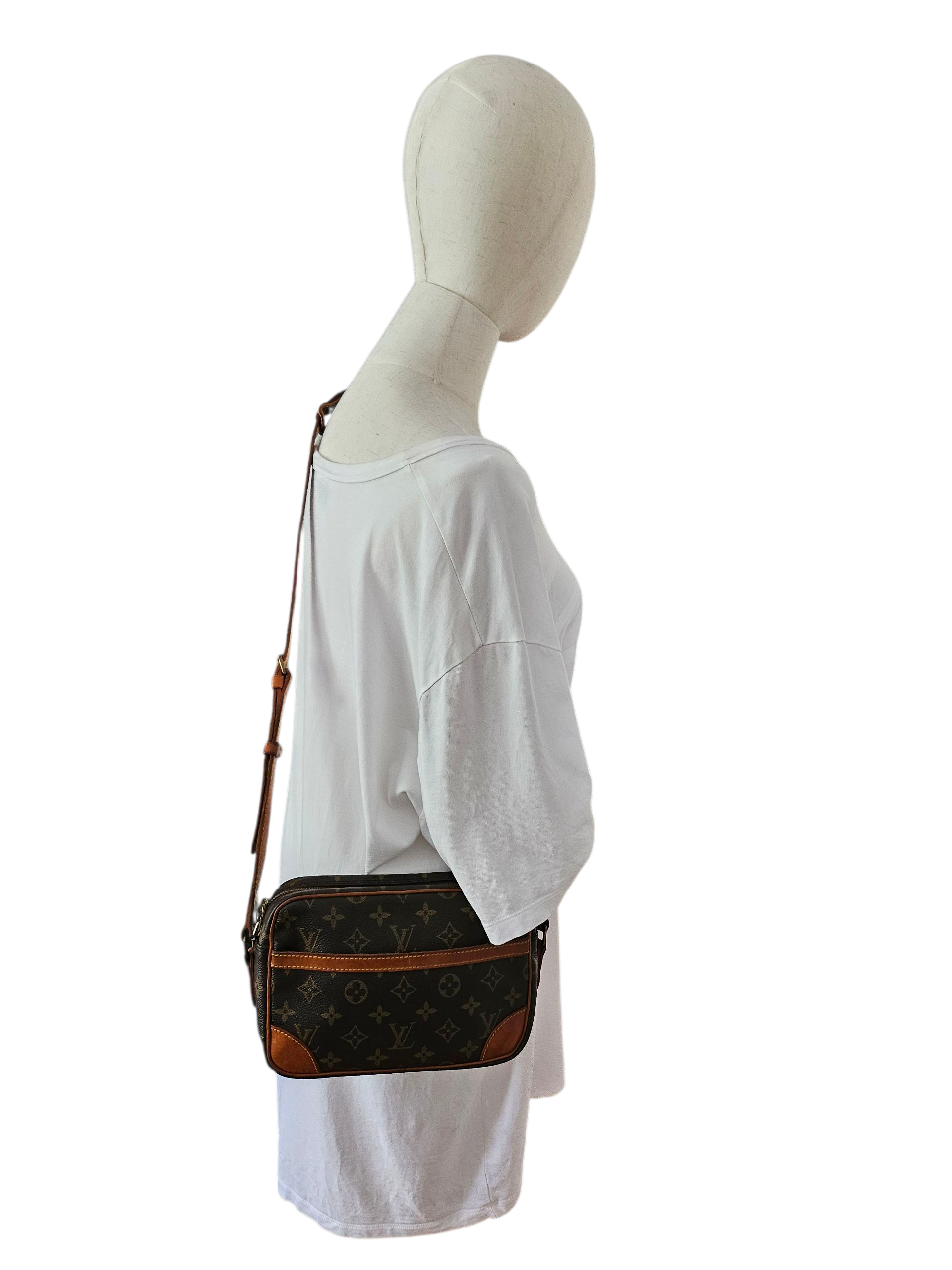 Vintage. Unisex. Made from iconic Monogram canvas. Handy size. Zipper closure and zipper pocket inside, both zippers work properly. No cracks on canvas. Adjustable shoulder strap, can be worn as a shoulder bag or as a crossbody. All surfaces were just cleaned, leather conditioner applied.